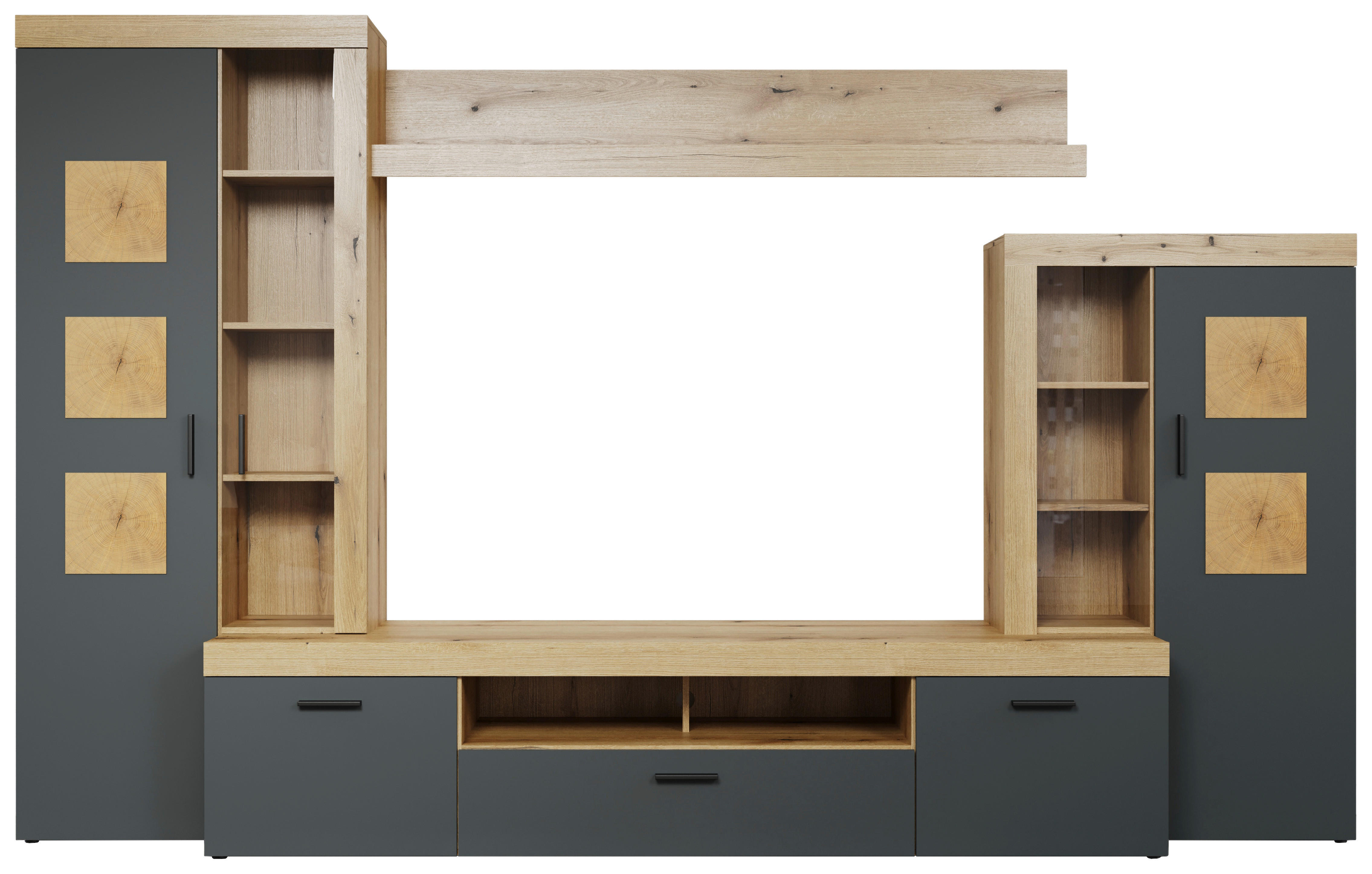 • Wohnwand Delamar 3-teilig In Coast Evoke Eiche - Modernes Lowboard Mit LED-Beleuchtung