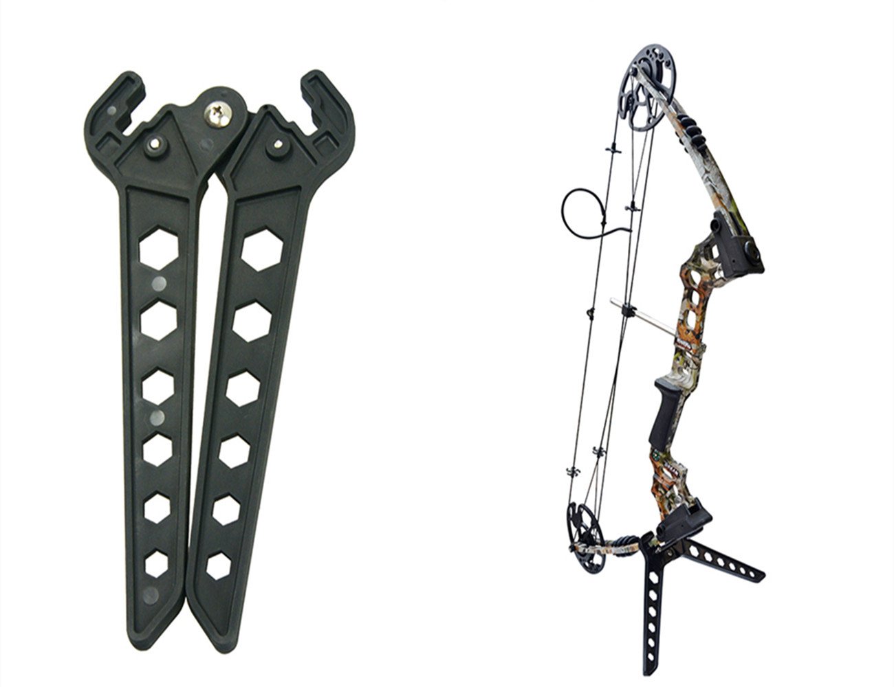 Bogenschützen aufgepasst! Dieser Wolfman Compoundbogen-Ständer ist der perfekte Begleiter für Training und Aufbewahrung. Höhenverstellbar von 27,5\\\ bis 31,4\\\ - einfach drehen und die ideale Position finden. Die verstärkte Konstruktion zwischen Wiege und Halterung sorgt für maximalen Halt, kein Wackeln, kein Umfallen! Der schirmförmige Aufbau mit drei dicken Metallstützen und rutschfesten Gummifüßen steht bombenfest auf jedem Untergrund. Besonders clever: Die ungleichmäßig gepolsterten Arme halten sowohl dünne als auch dicke Bögen sicher fest, ohne Kratzer zu hinterlassen. Überall dort, wo der Bogen Kontakt hat, schützt weicher EVA-Schaum die empfindliche Oberfläche. Nach dem Training einfach zusammenklappen - platzsparend und leicht zu transportieren mit nur 683g Gewicht. Aus Legierung, Moosgummi und Gummi gefertigt, hält dieser Ständer was er verspricht. Ideal für zu Hause, im Verein oder auf Turnieren - dein Bogen verdient den besten Stand!