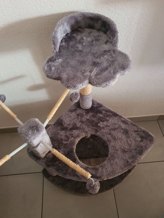 Ein Traum für jede Katze! Dieser süße Katzenbaum in Wolken-Form sieht nicht nur niedlich aus, sondern ist auch super praktisch. Mit 56cm Höhe perfekt für kleine Räume. Das dicke Natursisalseil befriedigt den Kratzinstinkt deiner Samtpfote und schont deine Möbel. Oben ein kuscheliges Wolken-Bett zum Ausruhen und Chillen. Mit baumelndem Spielzeug (Mond und Stern) für extra Spielspaß! Die stabile Basis verhindert Umkippen - auch bei wilden Kratzattacken. In nur 5 Schritten aufgebaut und schon kann der Spaß beginnen! Inklusive Katzenminze für schnelle Akzeptanz. Der Bezug ist abnehmbar und maschinenwaschbar - praktisch und hygienisch. Deine Katze wird ihn lieben!