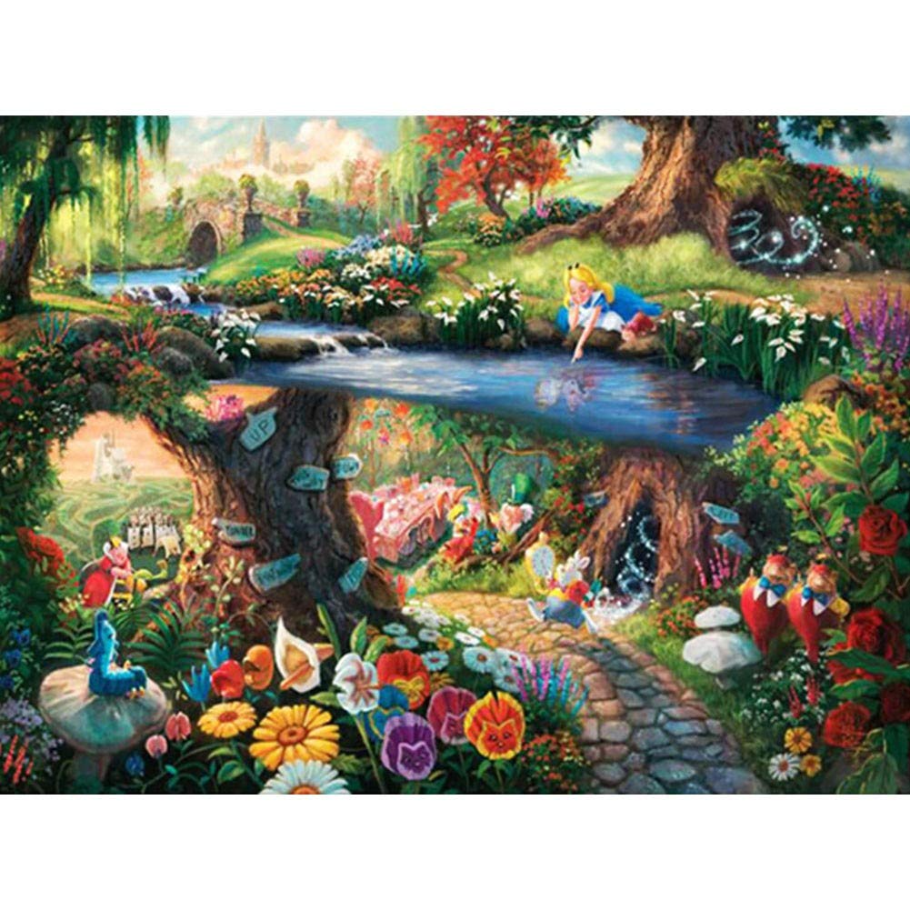 Tauche ein in die magische Welt von Alice im Wunderland mit dieser wunderschönen 5D Diamant-Malerei! Das 50x70cm große Kit enthält alles, was du brauchst: hochauflösende Leinwand, glänzende Cube-Diamanten, Stift, Tablett und Kleber. Die runden Harzdiamanten glitzern besonders intensiv und machen das fertige Bild zu einem echten Hingucker. Perfekt zur Entspannung nach einem stressigen Tag - einfach die Diamanten nach den Symbolen aufkleben und das Kunstwerk entsteht wie von Zauberhand. Für Erwachsene und Kinder ab 8 Jahren geeignet. Das fertige Bild ist eine wunderschöne Wanddekoration für Wohnzimmer, Schlafzimmer oder Büro. Auch ein tolles Geschenk für Geburtstage, Weihnachten oder einfach so. Einfach anfangen und sich von der magischen Welt von Alice verzaubern lassen! Stundenlanger Bastelspaß garantiert.