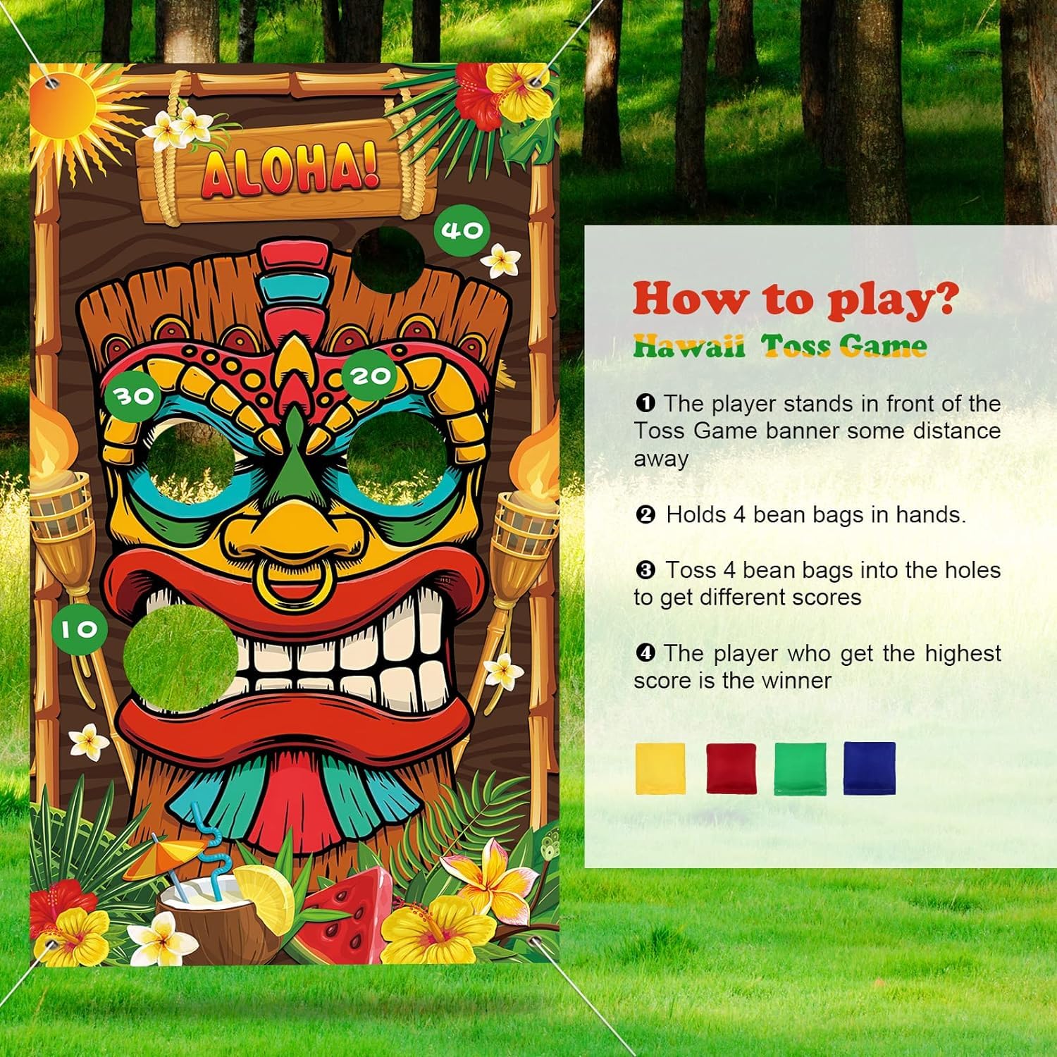 Aloha! Bring Hawaii-Feeling zu deiner Party! Dieses komplett Wurfspiel-Set von Lets Joy enthält alles für lustige Stunden: Ein buntes Hawaii-Banner (137x73cm), 4 Wurfsäckchen und 10m Seil zum Aufhängen. Einfach das Seil durch die Löcher fädeln und an Bäumen oder Pfosten befestien - schon kann der Spaß beginnen! Das Banner mit hawaiianischem Totem-Design sorgt für echte Südsee-Atmosphäre. Perfekt für Pool-Partys, Strandfeste, Tiki-Partys oder Gartenfeiern. Aus hochwertigem, waschbarem Material - wiederverwendbar für viele Partys! Kann auch als coole Foto-Kulisse genutzt werden. Einfach aufbauen und loswerfen - wer trifft ins Ziel? Perfekte Unterhaltung für Groß und Klein bei deiner nächsten Hawaii-Party!