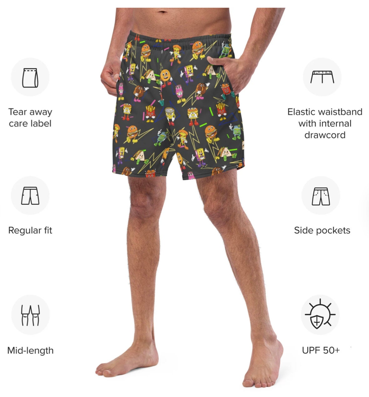 Funny Food Shorts Unisex - Wurst Schweinebauch Fast Food Print Badeshorts
