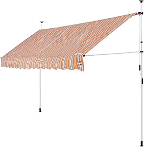 Das UV-beständige Polyester-Gewebe (180 g/m²) schützt vor Sonne und ist wasserabweisend. Mit der Handkurbel lässt sich die Markise stufenlos von 0° bis 90° neigen - perfekt für jede Sonnenposition!