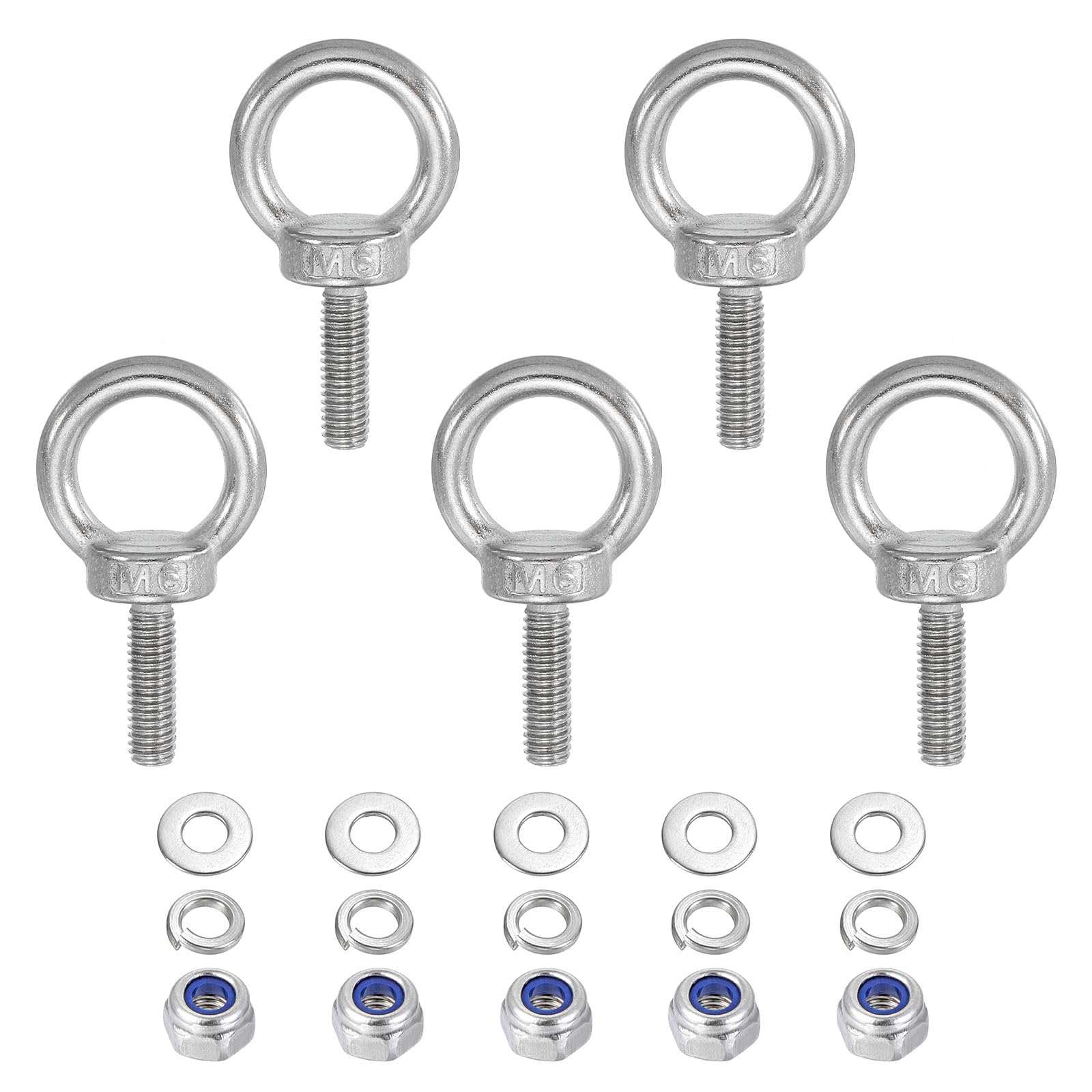 Brauchst du stabile Aufhängeösen für verschiedene Projekte? Diese PATIKIL Augenschrauben sind genau das Richtige! Du bekommst 3 komplette Sets in silbernem Edelstahl! Jedes Set enthält: Eine Augenschraube M6 x 120mm mit 17mm Innendurchmesser, plus Mutter, Dichtung, flache Unterlegscheibe und federnde Unterlegscheibe! Aus robustem 304 Edelstahl - rostfrei, korrosionsbeständig und super langlebig! Die Gewinde sind präzise bearbeitet für einfache Installation! Perfekt für: Sonnensegel, Markisen, Zäune, Hängematten, Hebevorrichtungen und vieles mehr! Einfach in die vorbereiteten Löcher stecken, Unterlegscheiben und Muttern in der richtigen Reihenfolge auflegen und festziehen! Wichtig: Vor dem Kauf die benötigte Größe prüfen! Mit ihrer hohen Tragfähigkeit sind diese Schrauben echte Alleskönner! Ob im Garten, in der Werkstatt oder für industrielle Anwendungen - hier kriegst du Qualität die hält! Mach deine Aufhängungen sicher und zuverlässig!