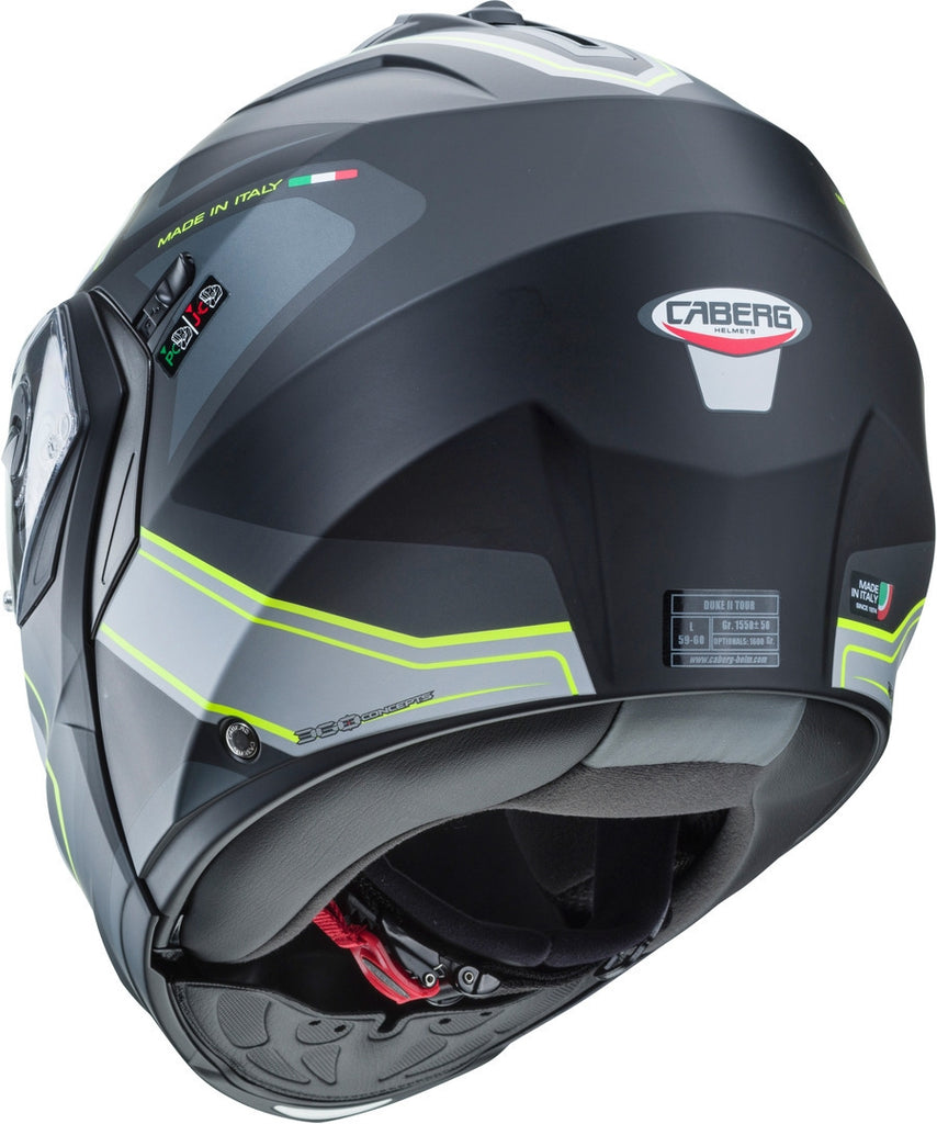 Italienische Qualität vom Feinsten! Der CABERG Duke X SMART ist ein absoluter Top-Helm mit innovativen Features. Das geniale Flip-Up System ermöglicht dir, das Kinnvisier zu öffnen und trotzdem sicher unterwegs zu sein - dank der ECE 22.06 P/J Zulassung. Mit nur 1550 Gramm ist der Helm superleicht und ermüdet deine Nackenmuskulatur auch auf langen Touren nicht. Ausgestattet mit dem Double Visor Tech System hast du immer das richtige Licht - das innere Sonnenvisor fährt einfach per Hebel runter. Das Pinlock Anti-Beschlag-System sorgt für klare Sicht bei jedem Wetter. Die komplett entfernbaren und waschbaren Innenpolster aus atmungsaktivem Material garantieren Frische. Und das Beste: Der Helm ist vorbereitet für das CABERG PRO SPEAK EVO Bluetooth Kommunikationssystem. 100% Made in Italy - Qualität, auf die du dich verlassen kannst!