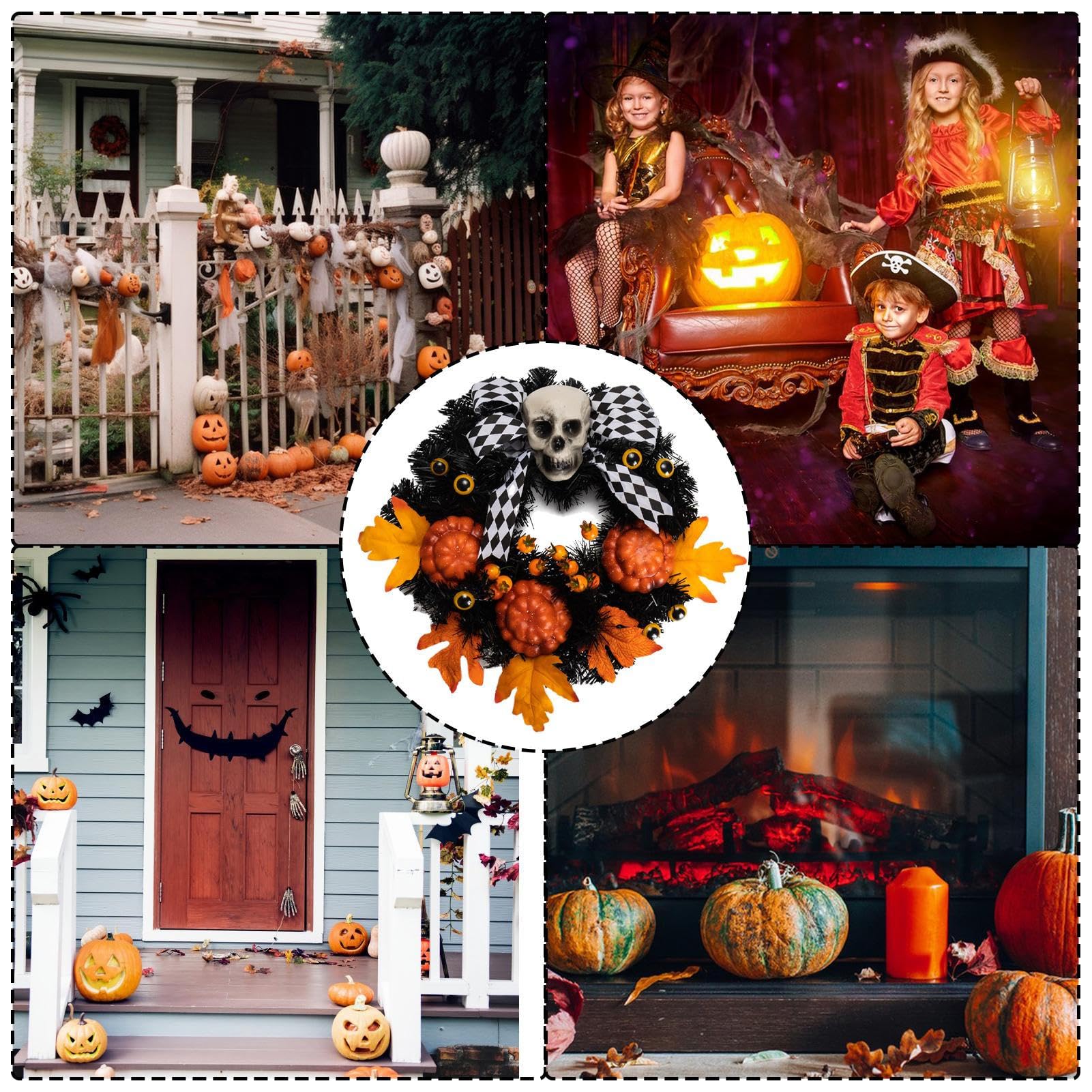 Xiyocadt Halloween-Kranz 50cm - Mit Totenkopf & Kürbissen, Kunststoff Für Türdeko