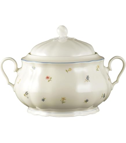 Stell dir vor: Du servierst deine selbstgemachte Suppe in dieser wunderschönen Terrine - das ist einfach der Hammer! Die 1,5 Liter fassende Keramik-Schale in klassischem Weiß mit edler goldener Umrandung macht jede Mahlzeit zum besonderen Event. Aber hey, die kann viel mehr als nur Suppe! Pasta, Eintöpfe oder sogar Salate sehen darin gleich doppelt so lecker aus. Der passende Deckel hält alles schön warm, und mit der praktischen Kelle wird das Servieren zum Kinderspiel. Aus hochwertiger Keramik gefertigt ist sie sowohl für den täglichen Gebrauch als auch für besondere Anlässe perfekt geeignet. Übrigens: Sie ist nicht für Induktionsherde oder offene Flammen geeignet - also bitte nur zum Servieren verwenden. Mit Maßen von 27x27x14 cm passt sie super in jede Küche und ist ein echter Hingucker auf dem Esstisch. Deine Gäste werden begeistert sein!