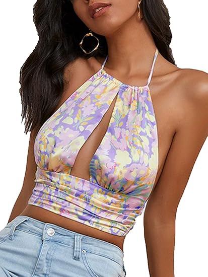 • Damen Neckholder-Top Y2k - Sexy Rückenfrei Mit Blumenmuster