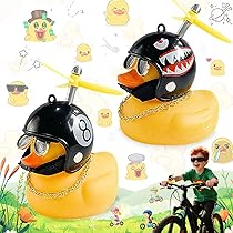 Total süßes Enten-Set für dein Fahrrad! Enthält 2 gelbe Enten, 5 Helme, 2 Propeller, Brillen und mehr. Der Propeller dreht sich im Wind - mega niedlich! Einfach mit Klebepads oder Riemen befestigen. Auch als Badespielzeug nutzbar. Perfektes Geschenk für Fahrrad-Fans oder Kinder. Mach dein Fahrrad zum echten Hingucker und hab immer eine klingelnde Ente dabei!
