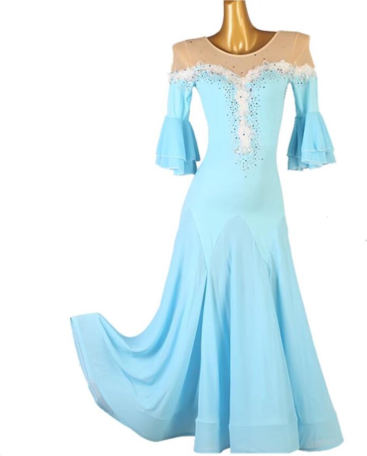 Wow, in diesem Tanzkleid fühlst du dich wie eine echte Tänzerin! Perfekt für Walzer, Tango, Zumba oder jeden anderen Gesellschaftstanz. Aus weicher Spandex-Mischung mit hochdichtem Garn und 40D Nylon-Netzgarn gefertigt, liegt das Kleid super angenehm auf der Haut und bewegt sich wunderschön mit dir. Der einfache Rundhalsausschnitt und die gebogene Netzapplikation sehen einfach elegant aus, während die Diamanteinlage für extra Glanz sorgt. Der verlängerte unsichtbare Reißverschluss macht das Anziehen super einfach und der flauschige Saum gibt dem Kleid den perfekten Schwung. Besonders praktisch: Das Material ist dehnbar, atmungsaktiv und hat ein tolles Fallverhalten. Bevor du bestellst, schau unbedingt in die Größentabelle oder gib deine Maße (Größe/Gewicht/Brust/Taille) mit an, damit das Kleid perfekt passt. Ob für Turniere, Auftritte oder den Tanzabend - in diesem Kleid wirst du alle Blicke auf dich ziehen!