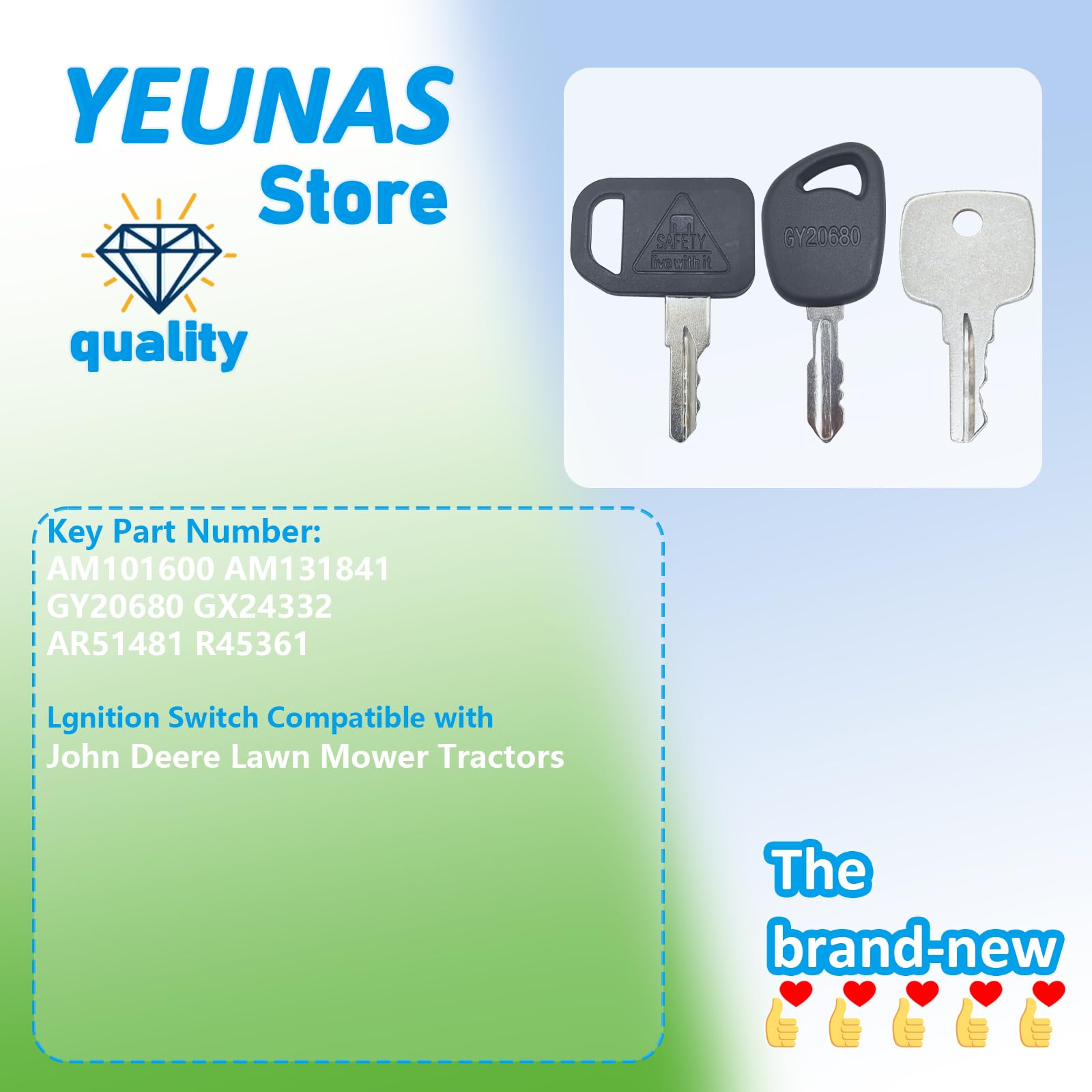 Hast du deine John Deere Schlüssel verloren? Kein Stress! Dieses praktische Ersatzschlüssel-Set von YEUNAS hilft dir weiter. Enthält die Schlüssel AM131841, GY20680 und AR51481 - also alles, was du für deine schweren Geräte brauchst. Super einfach zu verwenden, funktionieren einwandfrei. Du bekommst zwei Schlüssel, damit du für alle zukünftigen Herausforderungen gesichert bist. Wichtig: Vor dem Kauf unbedingt prüfen, ob die Schlüssel für dein spezifisches Maschinenmodell passen. Kein langes Warten auf teure Ersatzteile mehr - einfach bestellen und sofort verwenden. Die Qualität ist top, die Schlüssel sind stabil und passen perfekt. Ob für Traktoren, Mähdrescher oder andere Landmaschinen - mit diesem Set bist du immer auf der sicheren Seite. Einfach in die Tasche stecken und mitnehmen - praktischer geht's nicht! Perfekt für Landwirte, Bauunternehmer oder jeden, der mit John Deere Geräten arbeitet. Ein kleiner Preis für viel Sicherheit und Komfort!