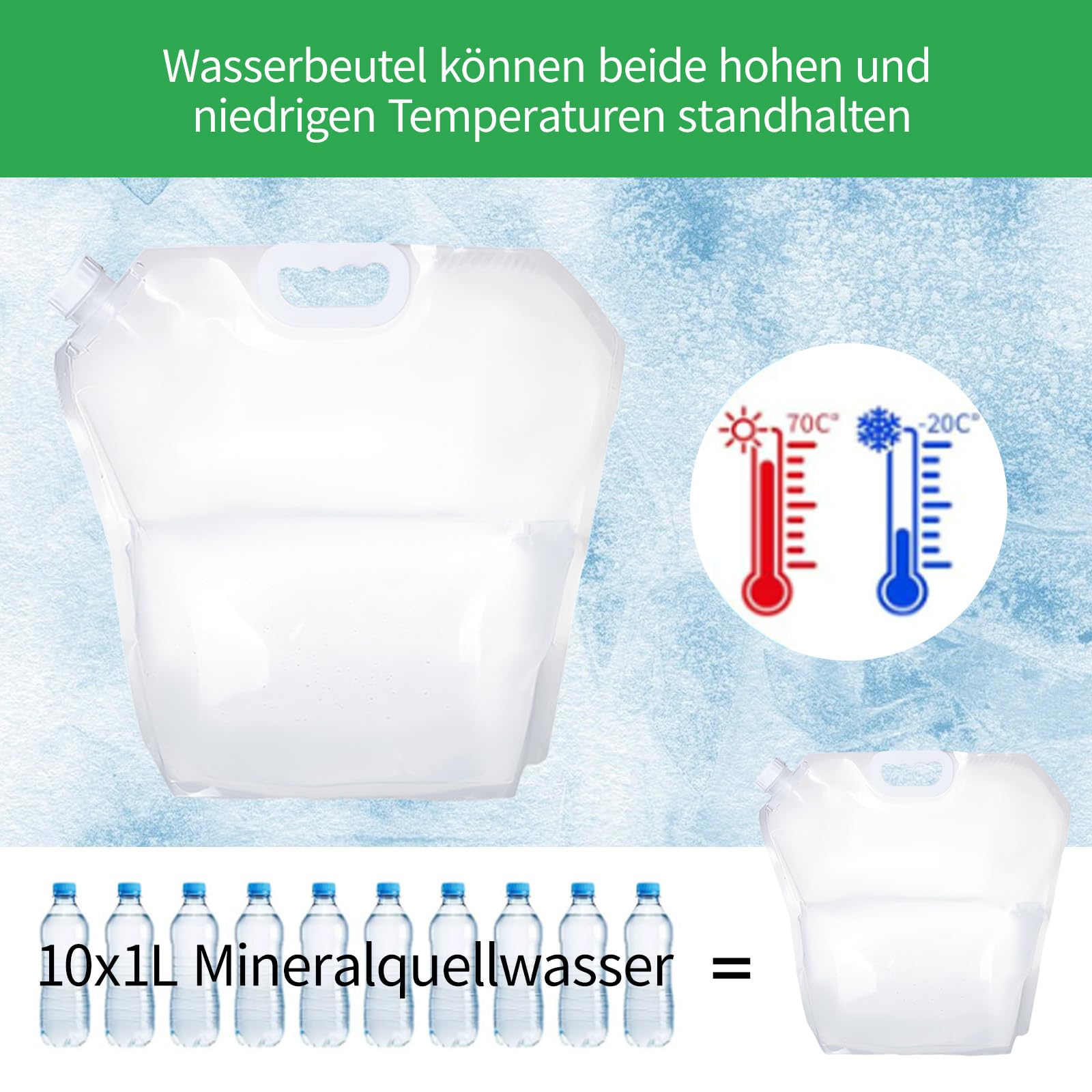 Mega praktisches Set mit 2 faltbaren Wasserkanistern à 10 Liter! Perfekt für Camping, Wandern, Festivals oder Notvorrat. Aus robustem, flexiblem Material - hält Temperaturen von -30°C bis +60°C aus. Absolut auslaufsicher mit dichtem Verschluss. Transparent, damit du den Wasserstand immer im Blick hast. Mit ergonomischem Griff für bequemes Tragen. Leer zusammenfalten - kaum Platzbedarf! Einfach zu befüllen und zu reinigen. Stehen auch voll super stabil. Ob für Trinkwasser, Getränke oder Eiswürfel - vielseitig einsetzbar. Ideal für Garten, Baustelle oder Reisen. Spart Platz und ist immer griffbereit. Einfach aufblättern, befüllen und los geht's Abenteuer!