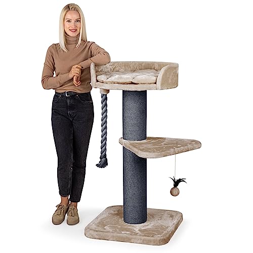 Ein echter Hingucker für alle Gothic-Fans und ihre Katzen! Dieser 160cm hohe Kratzbaum von YITAHOME vereint stylisches Design mit Katzenkomfort. Mit einzigartigen Details wie Sarg-förmigem Katzenbett, Fledermaus-Stufen und Spinnennetz-Plattformen. 4 Sisalsäulen und eine Kratzrampe laden zum Kratzen ein, 2 hängende Spinnenbälle zum Spielen. Die stabile Konstruktion mit Kippschutz hält auch lebhaften Katzen stand. Mit 3 gepolsterten Plattformen, Hängematte und Katzenhaus - genug Platz für 2-3 Katzen. Einfach montieren und deine Katzen werden diesen coolen Spielplatz lieben!