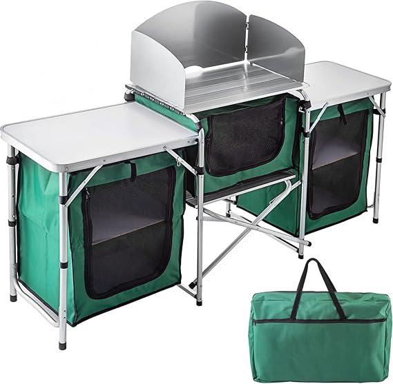 Deine komplette Outdoor-Küche für unterwegs! Dieser geniale Campingschrank von YRHome macht Kochen in der Natur zum puren Vergnügen. Mit drei verschiedenen Arbeitsplatten (66x34,5cm mittig, 60x40cm und 40x32cm seitlich) hast du reichlich Platz für deine Kochutensilien. Der zweistöckige Stoffschrank bietet Stauraum für Geschirr und Vorräte, während der integrierte Windschutz deine Flamme vor Böen schützt. Besonders praktisch: Der faltbare Aluminiumrahmen lässt sich ohne Werkzeug in Minuten aufbauen und nimmt in der mitgelieferten Tragetasche kaum Platz weg. Mit einer maximalen Belastung von 30kg ist der Schrank stabil genug für alle deine Kochabenteuer. Die verstellbare Lampe sorgt für perfektes Licht bei nächtlichen Kochsessions. Ob beim Camping, am Strand oder beim Picknick im Park - diese vielseitige Küchenlösung gibt dir das Gefühl von Zuhause, egal wo du bist. Ein Must-Have für alle Outdoor-Enthusiasten!
