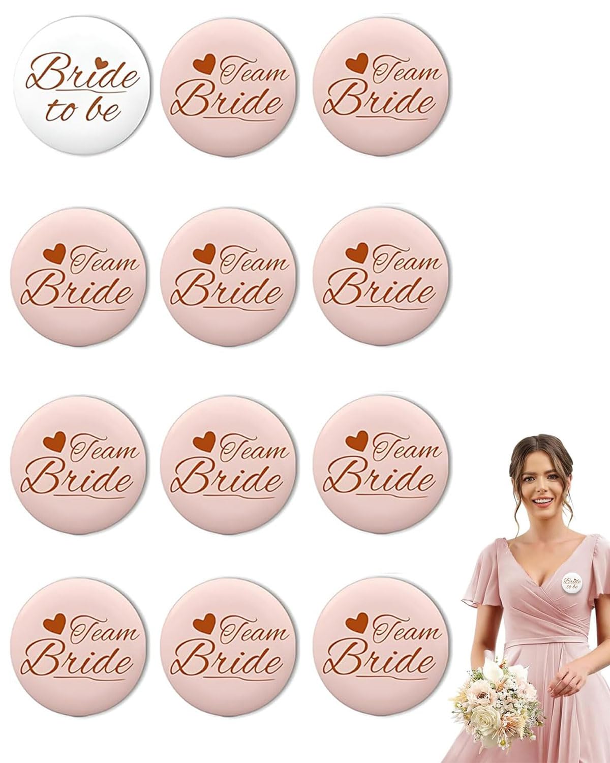 YUZNA 8 Stück Bride Squad Buttons - Junggesellinnenabschied Accessoires Pink