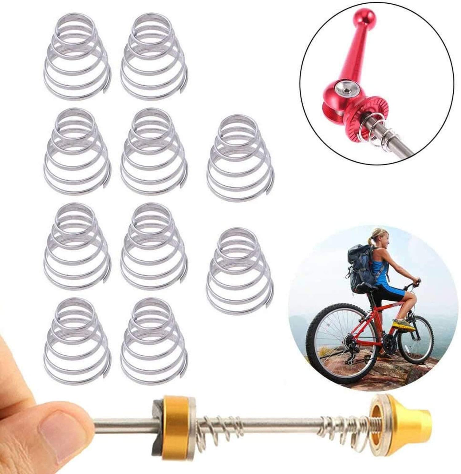 Mountainbiker und Radfahrer, diese Schnellspanner-Federn sind lebenswichtig für eure Räder! 10 Stück im Set - immer genug Ersatz parat. In silber, passend für die meisten Schnellspannhebel an Vorder- und Hinterrad. Wenn dein Schnellspanner nicht mehr richtig hält oder schwergängig ist, sind meist die Federn schuld. Einfach auswechseln und schon funktioniert dein Schnellspanner wieder wie neu. Super wichtig für deine Sicherheit - denn lose Räder sind gefährlich! Kleines Teil, große Wirkung - hab immer welche in der Werkstatt griffbereit. Bei dem Preis kannst du dir ruhig ein paar Sets gönnen!