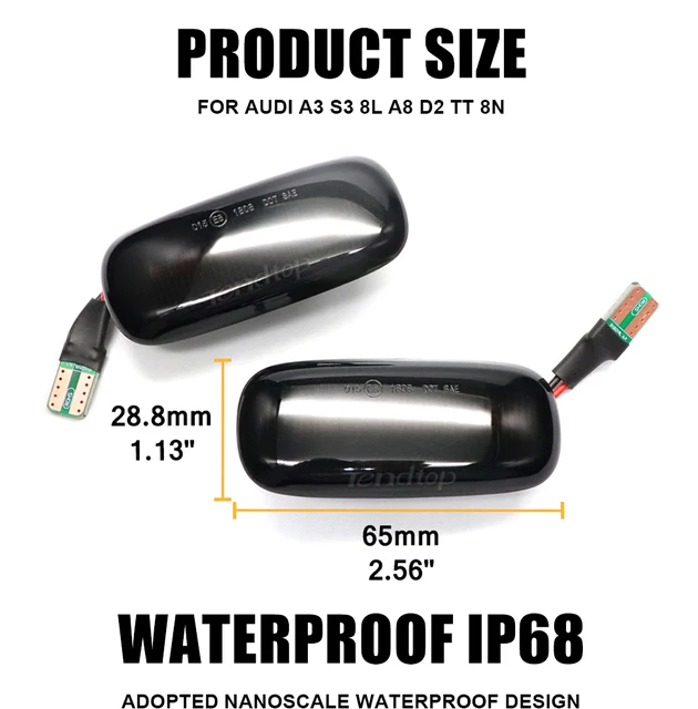 Mach deinen Audi noch stylischer mit diesen coolen LED Seitenblinkern! Perfekt für A3 S3 8L (2000-2003), A8 D2 (1999-2002) und TT 8N (2000-2006). Die dynamischen Blinker in Bernstein-Gelb sind super hell und sorgen für mehr Sicherheit im Straßenverkehr. Komplett wasserdicht und mit E8-Prüfzeichen - alles top Qualität! Die Installation ist super einfach: Einfach die alten Blinker raus, neue rein und mit dem Originalstecker verbinden. Keine aufwändige Verkabelung nötig. Das schwarze Design sieht einfach edel aus und gibt deinem Auto diesen besonderen Look. Einfach Plug & Play - in wenigen Minuten montiert und schon strahlt dein Audi wie neu!