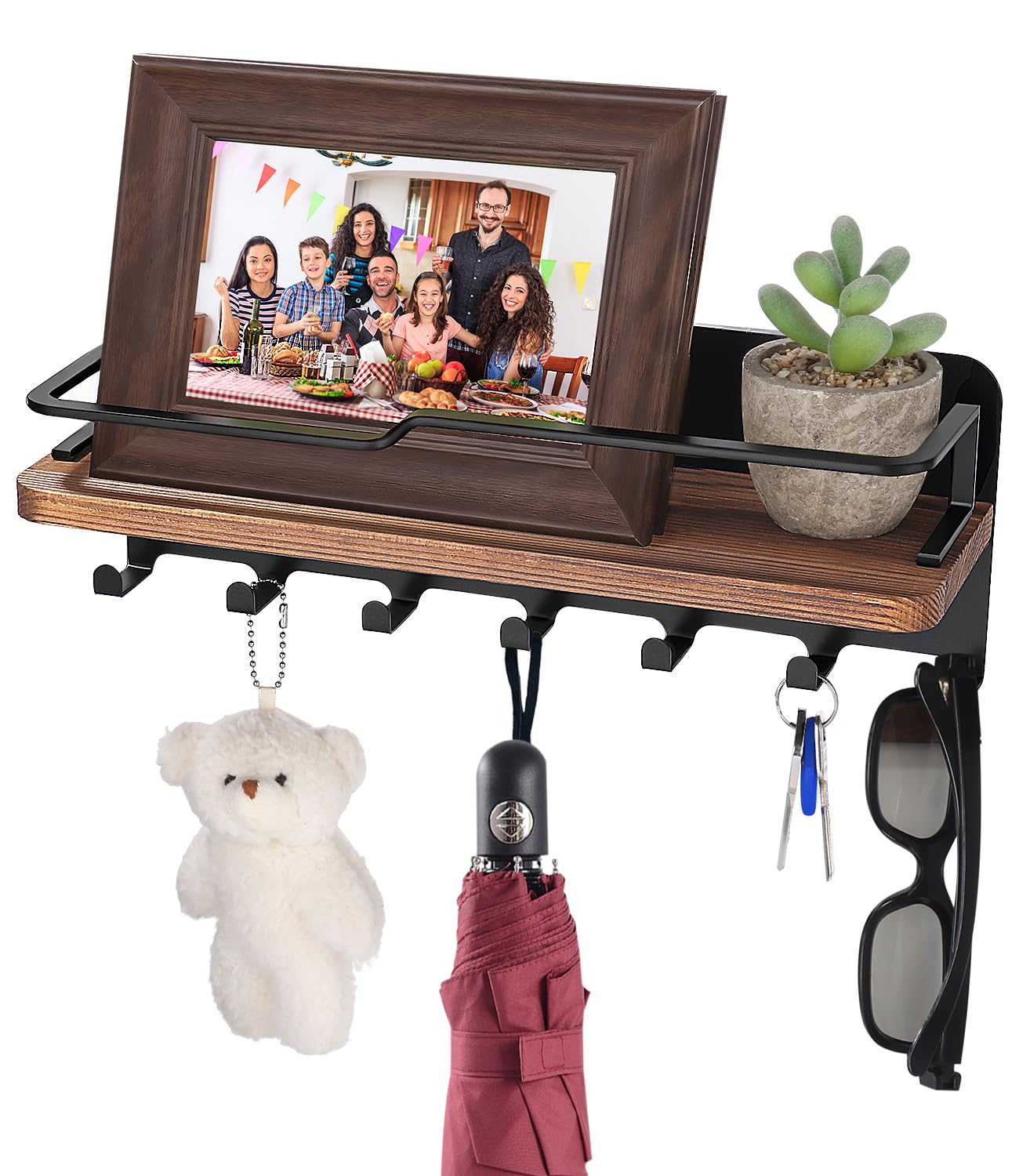 Die 7 Haken bieten reichlich Platz für alle Schlüssel der Familie. Die Ablage ist perfekt für Portemonnaie, Handy, Parfum oder andere Kleinigkeiten. Alles hat seinen festen Platz - nie wieder suchen!