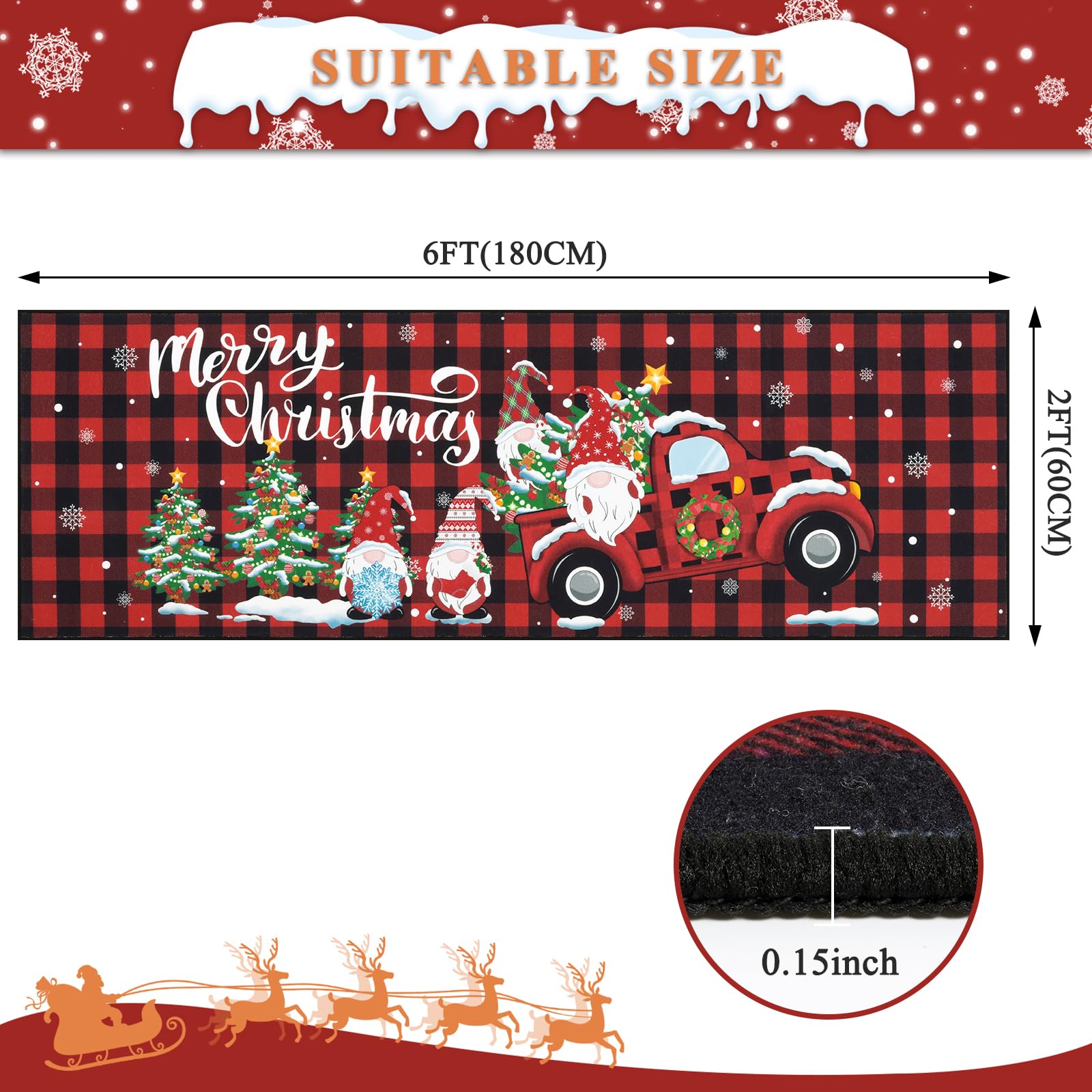 Bring weihnachtliche Stimmung in dein Zuhause mit diesem bezaubernden Weihnachtsläufer! Aus weichem Polyester gefertigt, fühlt sich der Teppich super angenehm an den Füßen an. Mit süßen Wintermotiven wie Schneemännern, Weihnachtsbäumen und dem Weihnachtsmann verbreitet er sofort festliche Atmosphäre. Die rutschfeste Unterseite mit Anti-Rutsch-Technologie sorgt für sicheren Halt auf jedem Boden - perfekt für ältere Menschen und Kinder! Einfach waschbar und pflegeleicht. Ob im Flur, Wohnzimmer, Schlafzimmer, Esszimmer oder sogar im Badezimmer - dieser Läufer passt überall hin und macht jeden Raum gemütlicher. Die fortschrittliche Textur-Imprint-Technologie verhindert Flecken und macht die Reinigung super einfach. Besonders praktisch: Der Teppich lässt sich restlos entfernen und platzsparend verstauen, wenn die Weihnachtszeit vorbei ist. Schaffe eine warme, einladende Atmosphäre in deinem Zuhause - dieser Weihnachtsläufer ist die perfekte Dekoration für die besinnliche Zeit!