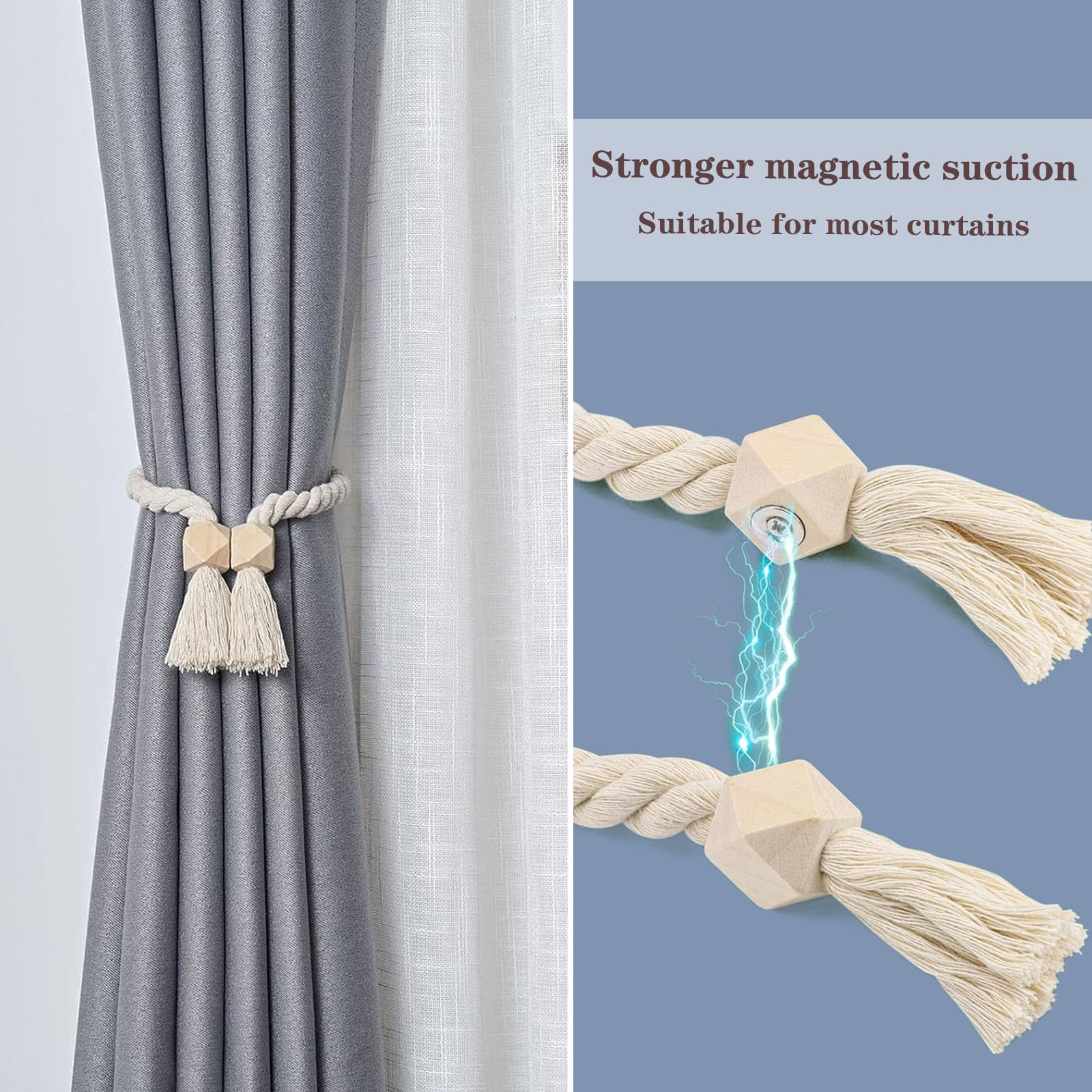 Diese wunderschönen magnetischen Vorhang-Raffhalter von Yuyueda bringen boho-chic in dein Zuhause! Im 4er-Set mit je 55cm Länge sind sie perfekt, um deine Vorhänge stylisch zurückzubinden. Handgewebte Baumwollbänder mit natürlichen Holzperlen und eleganten Quasten verleihen jedem Raum eine gemütliche Note. Die starken vernickelten Magnete halten sicher ohne Bohren oder Kleben - einfach anbringen und schon sitzen sie perfekt! Rutschfester Halt, der deine Vorhänge schont. Passt zu nordischem Minimalismus, Landhausstil, Bohème-Look oder maritimer Deko. Ideal für Schlafzimmer, Wohnzimmer, Küchen, Badezimmer, Büros oder Cafés - für alle Vorhangtypen von transparent bis Verdunkelung. Einfach zu handhaben: sekundenschnell befestigen oder lösen, ganz ohne Werkzeug! Die flexiblen Raffhalter lassen sich durch Drehen anpassen. Verleihe deinen Räumen mit diesen natürlichen und eleganten Raffhaltern eine ganz besondere Atmosphäre - stylisch und praktisch zugleich!