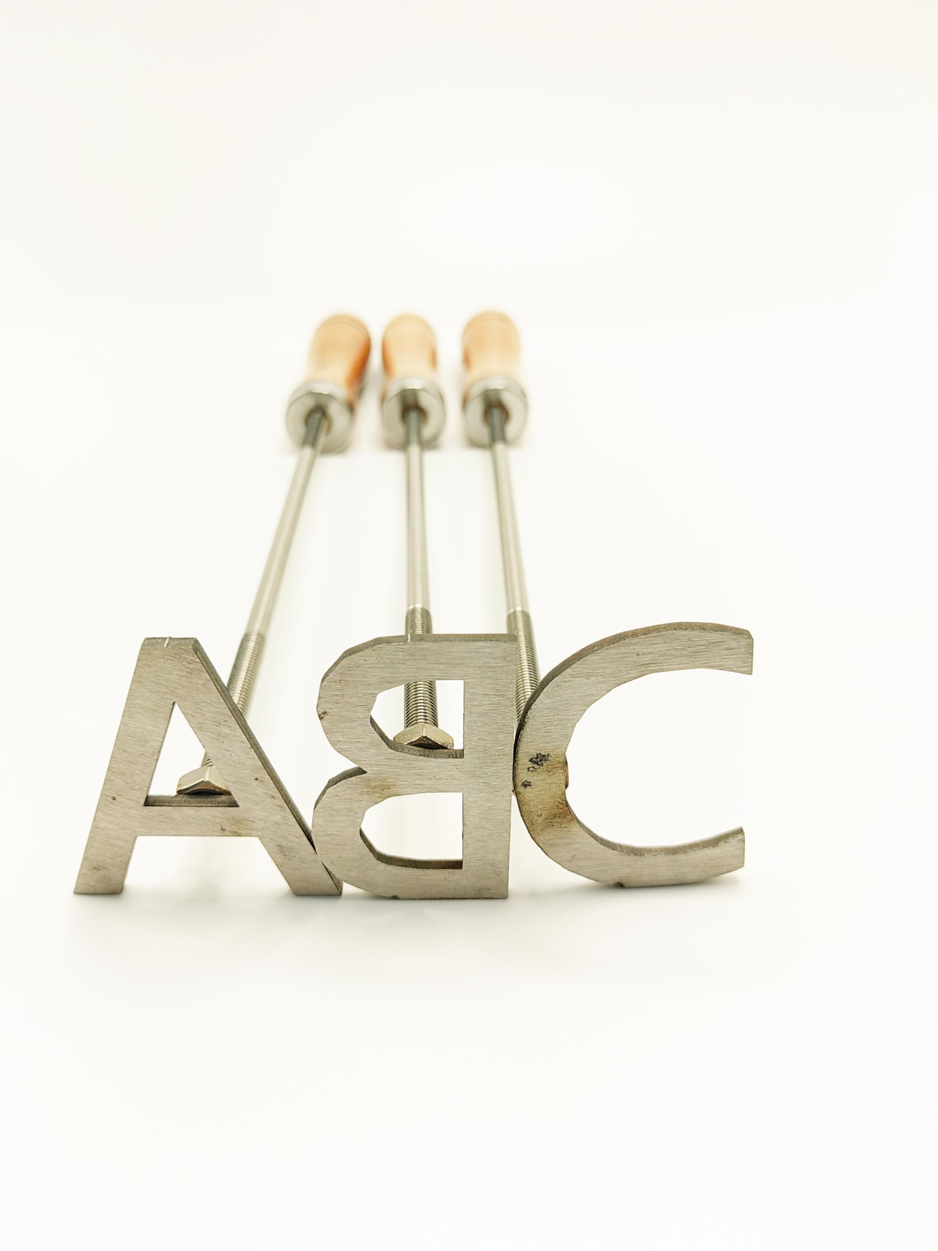 Verpasse deinen Kreationen deinen persönlichen Stempel! Dieses hochwertige Brandeisen-Set mit kompletten A-Z Alphabet lässt dich Initialen, Namen oder Botschaften in Holz und Leder brennen. Aus robustem Edelstahl gefertigt, hält das Brandeisen ewig und gibt klare, lesbare Abdrücke. Mit 5 wechselbaren, handgeschmiedeten Griffen à 25,4cm Länge kannst du bequem arbeiten ohne dir die Finger zu verbrennen. Die 5,1cm großen Buchstaben sind perfekt für Schneidebretter, Kochlöffel, Lederarbeiten oder Holzprojekte. Einfach erhitzen, aufdrücken und schon trägst du deine persönliche Note ein! Perfekt für Köche, Handwerker und alle, die ihre Werke individualisieren wollen. Auch ein mega Geschenk für kreative Menschen - denn selbst gemachte Dinge mit persönlicher Gravur sind einfach etwas Besonderes! Einfach handhaben, tolle Ergebnisse - was will man mehr?