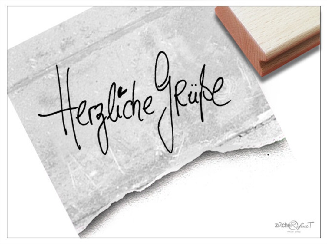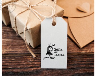 ZAcheR-fineT Stempel Grüße Von Herzen - Handgemacht Mit Rabe Motiv