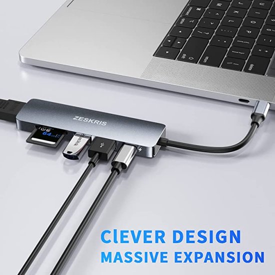 Dein Laptop hat nur einen USB-C Anschluss? Kein Problem mit diesem vielseitigen 6-in-1 Hub von ZESKRIS! Erweitere dein MacBook, Surface oder andere USB-C Geräte um wichtige Anschlüsse: 4K HDMI für kristallklare Bildübertragung auf Monitore oder Beamer, zwei superschnelle USB 3.0 Ports für externe Festplatten und Mäuse, SD und Micro SD Kartenslots für Fotos von der Kamera - und das Beste: Währenddessen kannst du dein Gerät mit bis zu 100W Power Delivery aufladen! Die Datenübertragung läuft mit 5 Gbit/s, also zehnmal schneller als mit USB 2.0. Das hochwertige Aluminiumgehäuse sieht nicht nur edel aus, sondern verhindert auch Überhitzung. Einfach einstecken und sofort nutzen - ohne Treiber oder komplizierte Einrichtung. Perfekt für Homeoffice, Präsentationen oder unterwegs, wenn du mehrere Geräte gleichzeitig anschließen möchtest. Kompatibel mit den meisten aktuellen Laptops, Tablets und sogar der Nintendo Switch. Endlich alle Anschlüsse, die du brauchst, in einem kompakten Adapter!