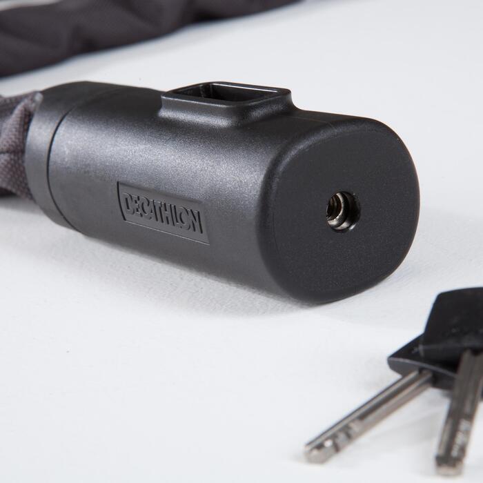 Dein Bike sicher abschließen? Mit dem ZIEGER Chain 900 bist du auf der sicheren Seite! 90 cm lange Kette aus gehärtetem Stahl - die kriegt so schnell keiner durch. Der Textilmantel schützt deinen Lack vor Kratzern, super praktisch. \n\nMit Staubschutzkappe für das Schloss, damit kein Dreck reinkommt. Zwei Schlüssel sind dabei - falls mal einer verloren geht. Passt nicht nur für Fahrräder, sondern auch für Roller, Motorräder oder sogar Kinderwagen. \n\nFlexibel genug, um sie um Laternen, Zäune oder Fahrradständer zu wickeln. Einfach zu handhaben, aber trotzdem sicher. Für den täglichen Gebrauch absolut geeignet. Dein Drahtesel ist damit bestens geschützt!