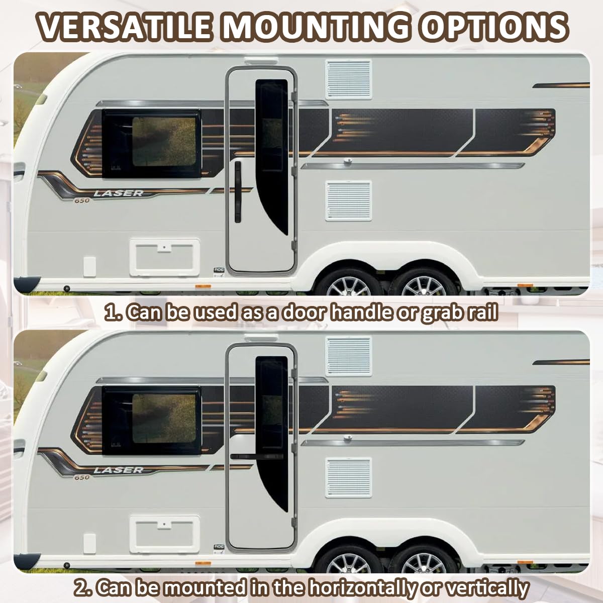 Hey, kennst du das? Du steigst in dein Wohnmobil oder Anhänger und wünschst dir einen sicheren Halt? Diese ZUDKSUY Haltegriffe sind genau das Richtige! Aus robuster Aluminiumlegierung und Stahl gefertigt, halten sie wirklich was aus. Die mattschwarze Oberfläche ist nicht nur stylisch, sondern auch super rutschfest - egal ob bei Regen oder mit nassen Händen. Du kannst sie sowohl horizontal als auch vertikal montieren, ganz wie es dir passt. Perfekt für Wohnmobile, Wohnwagen, Lieferwagen oder sogar Boote! Das 2er-Set kommt komplett mit allen notwendigen Schrauben - kein zusätzliches Werkzeug nötig. Die Installation ist echt simpel, das schaffst du auch als Heimwerker problemlos. Die Griffe sehen nicht nur gut aus, sondern geben dir auch ein sicheres Gefühl beim Ein- und Aussteigen. Besonders praktisch für ältere Menschen oder wenn du mal was Schweres tragen musst. Das moderne Design passt sich jedem Fahrzeug an und wertet es richtig auf. Kein Wackeln, kein Verrutschen - einfach festen Halt, wann immer du ihn brauchst. Ob für die Scheunentür, den Wohnwageneingang oder als Tritthilfe - diese Haltegriffe machen einfach alles mit!