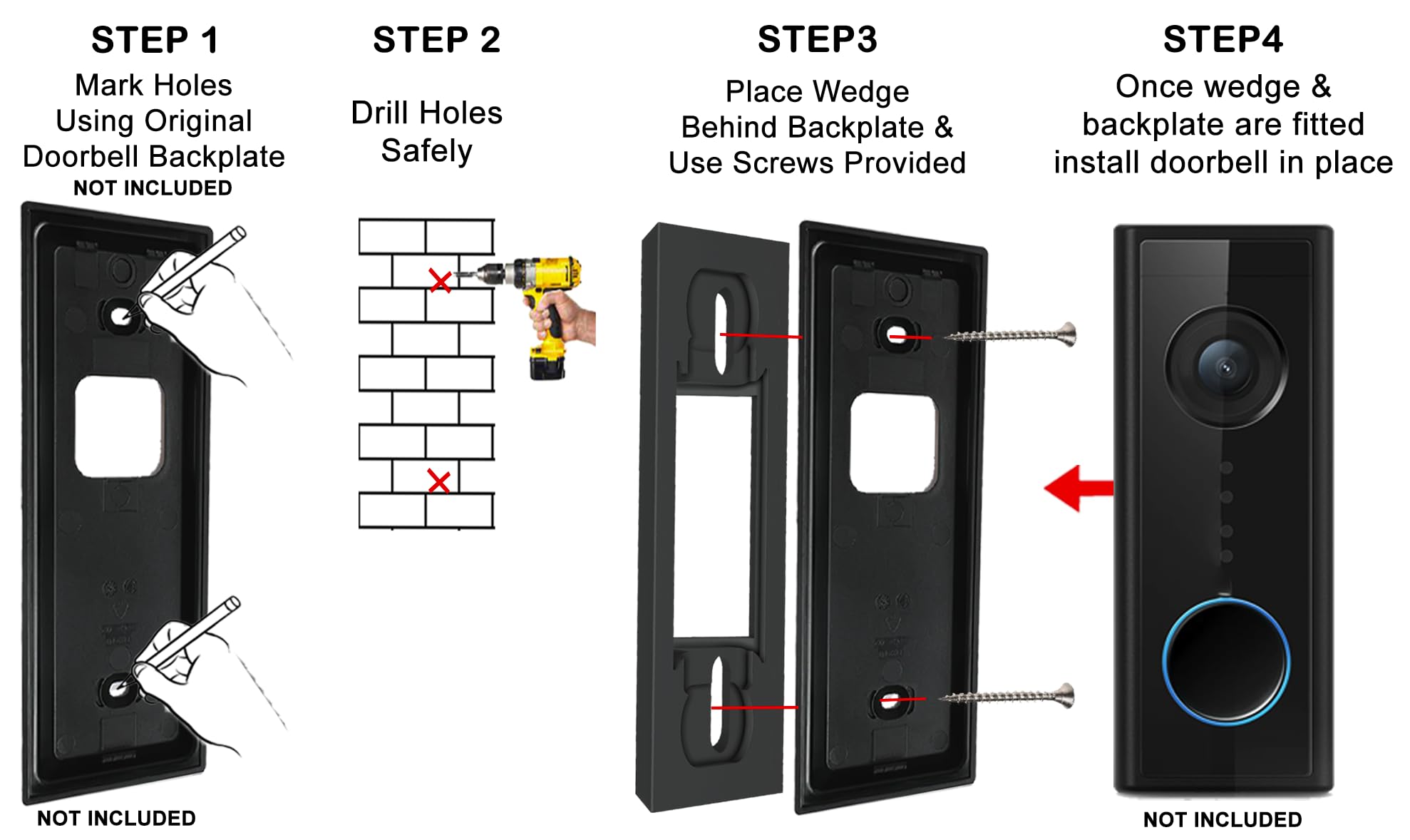 Deine Video-Türklingel filmt nur die Treppe und nicht den Weg? Mit dieser Winkelhalterung von Zahala löst du das Problem sofort! Du kannst den Winkel nämlich ganz genau von 30 bis 55 Grad einstellen - so siehst du endlich, wer wirklich zu dir kommt.\n\nDie Halterung ist kompatibel mit den meisten Video Türklingel-Modellen: 2, 3, 3 Plus, 4 und dem 2020er Modell. Das symmetrische Design ist super durchdacht - du kannst die Halterung sowohl für links als auch rechts verwenden.\n\nDie Installation ist total einfach und dauert nur 10-15 Minuten. Bei den meisten Modellen kannst du sogar die vorhandenen Löcher verwenden, musst also nicht extra neue bohren. Die genaue Gradskala hilft dir, den perfekten Winkel genau einzustellen.\n\nAus hochwertigem ABS-Material gefertigt, ist die Halterung robust und witterungsbeständig. Die Edelstahlschrauben passen perfekt und rosten nicht. So verbesserst du nicht nur die Bewegungserkennung, sondern siehst auch Besucher besser, bevor sie überhaupt klingeln.\n\nAchtung: Die Türklingel selbst ist nicht im Lieferumfang enthalten! Aber mit der detaillierten Anleitung und der 1-Jahres-Garantie bist du auf der sicheren Seite.