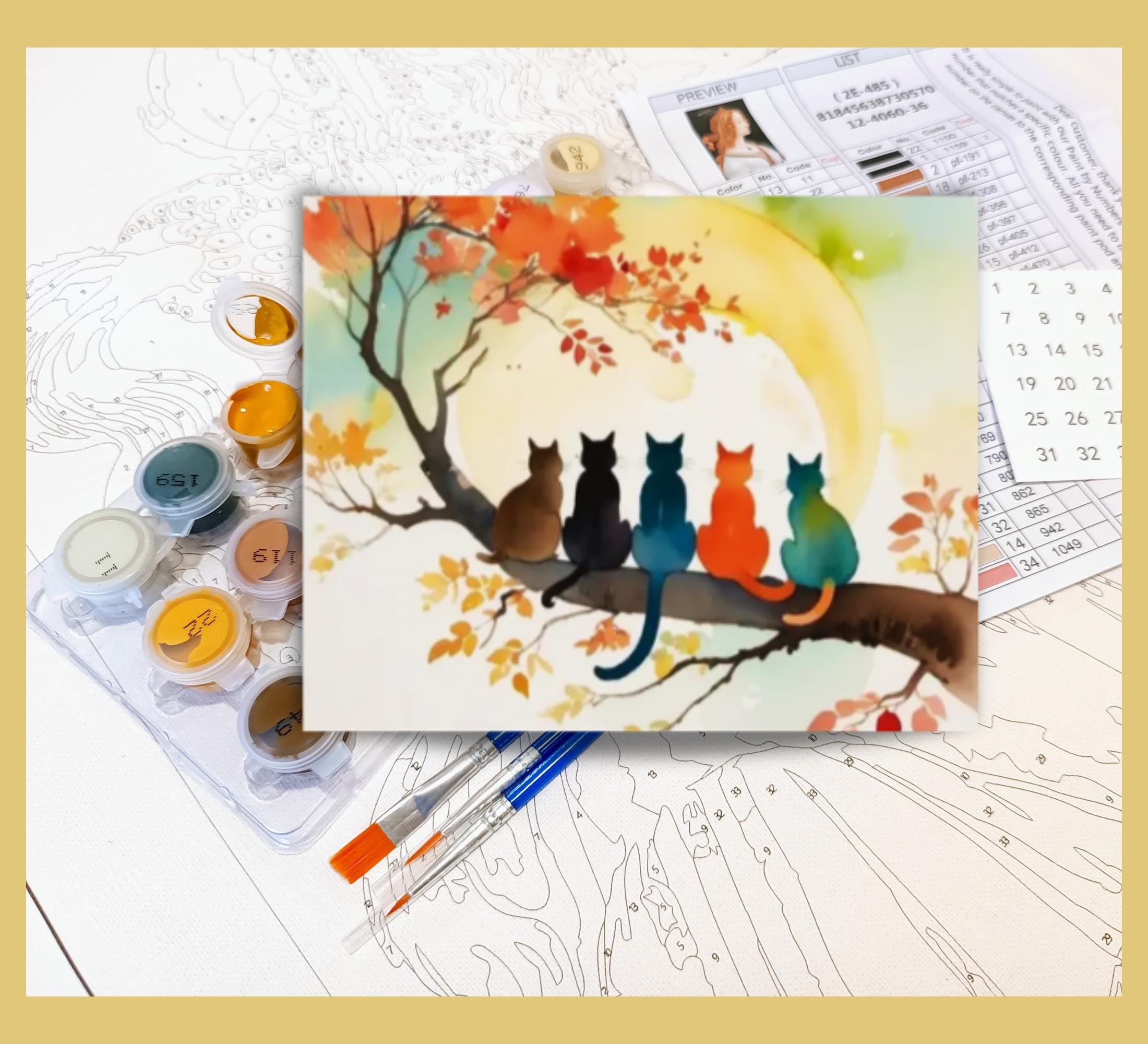 Entspannendes Malvergnügen für jeden! Dieses Malen-nach-Zahlen Set mit der magischen Katze vor Vollmond macht einfach Spaß. Alles dabei: Leinwand 40x50cm, 3 Pinsel, Acrylfarben. Die Farben sind ungiftig und geruchlos - absolut sicher. Perfekt für Anfänger und Fortgeschrittene. Schafft eine wunderschöne Wanddekoration und hilft beim Stressabbau. Einfach die Zahlen ausmalen und dein eigenes Kunstwerk schaffen!