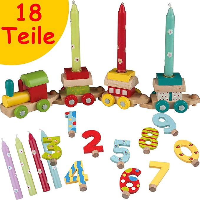 Boah, dieser Geburtstagszug aus Holz ist einfach der Hit für jede Kinderparty! Der 12-teilige Zug hat ne Lokomotive und coole Zahlen-Waggons - perfekt um die Geburtstagskerzen zu platzieren. Aus robustem Holz gefertigt, hält der auch wildeste Kindergeburtstage aus. Macht nicht nur mega Spaß beim Spielen, sondern sieht auch als Tischdekoration einfach umwerfend aus! Die kindgerechte Größe ist ideal für kleine Hände und fördert nebenbei noch die motorischen Fähigkeiten und Kreativität. Egal ob für Jungs, Mädchen oder die ganze Kindergartengruppe - dieser Zug begeistert einfach alle. Einfach die Kerzen auf die Waggons stecken, anzünden und den Geburtstagssong singen! Danach kann damit gespielt werden wie mit einer normalen Holzeisenbahn. Perfekt als Geschenk oder für die eigene Feier - damit wird jeder Kindergeburtstag zu nem unvergesslichen Erlebnis!