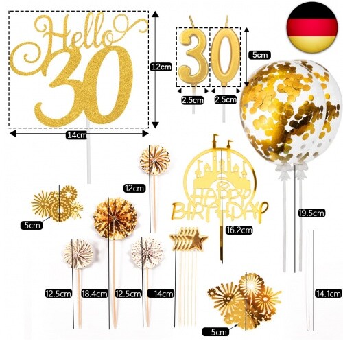 Hey, suchst du die perfekte Deko für den 30. Geburtstag? Dieses Set hat alles, was du brauchst: zwei goldene 3D-Zahlenkerzen (3 und 0), plus 4 hübsche Papierfächerblumen und 5 Herz-Deko-Elemente für den Kuchen. Die Kerzen sind etwa 6 cm hoch und mit Ständer insgesamt 11,5 cm - passen super auf die meisten Torten! Machen jeden Kuchen zum Hingucker. 😊 Made from eco-friendly Material, riechen nicht und brennen easy an. Ideal nicht nur für Geburtstage, sondern auch für Jubiläen, Mottopartys oder Hochzeiten. Das metallische Gold-Design ist voll im Trend und gibt dem Geburtstagskuchen diesen besonderen 3D-Effekt. Ob für ihn oder sie - ein total persönliches Geschenk, das auch als Spielzeug oder Deko weiterverwendet werden kann. Perfekt für alle, die ihren Liebsten einen unvergesslichen Tag bereiten wollen!