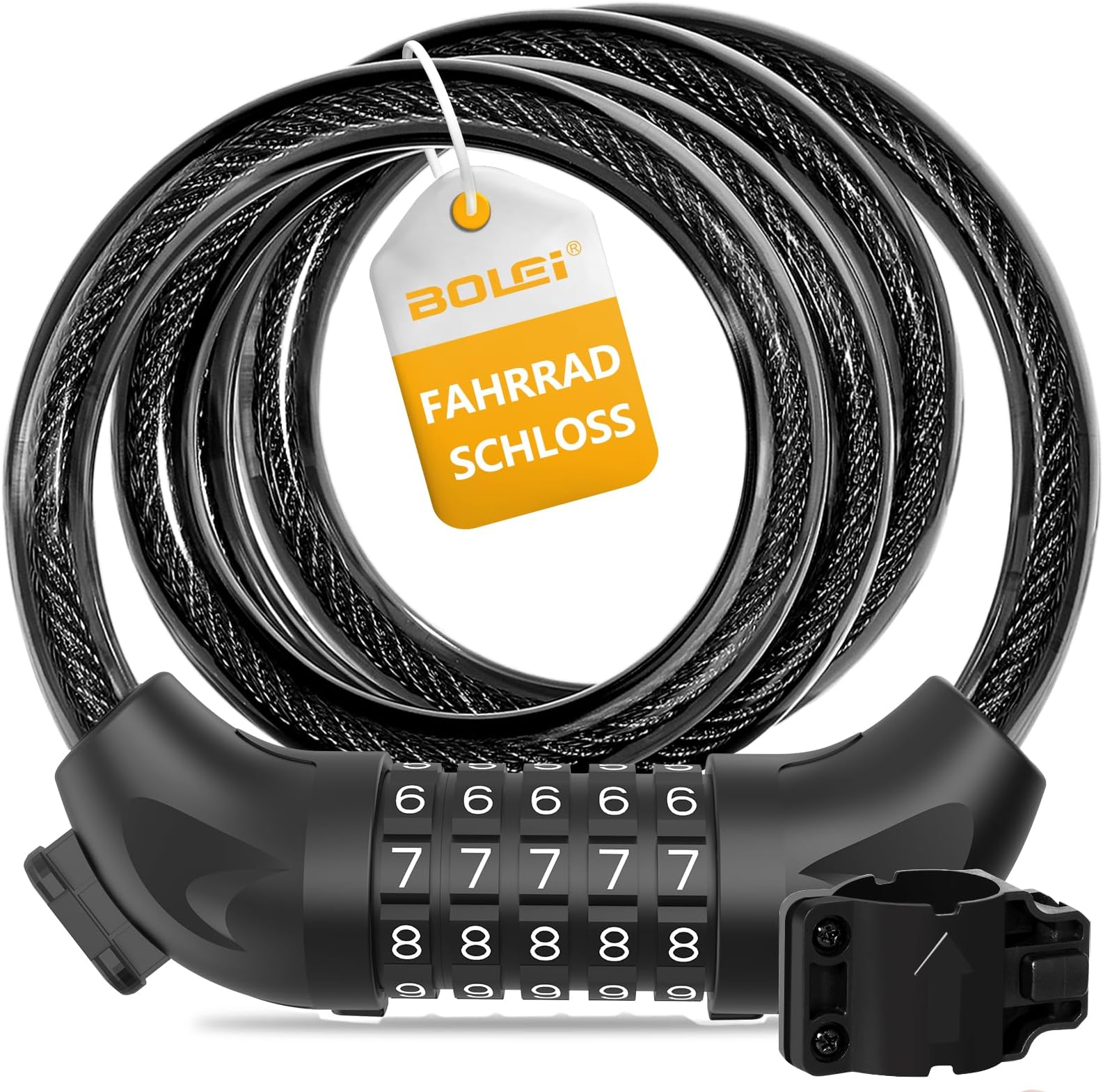 • Fahrradschloss 120cm Zahlenschloss - 12mm Stahlseil Mit 5-stelliger Kombination