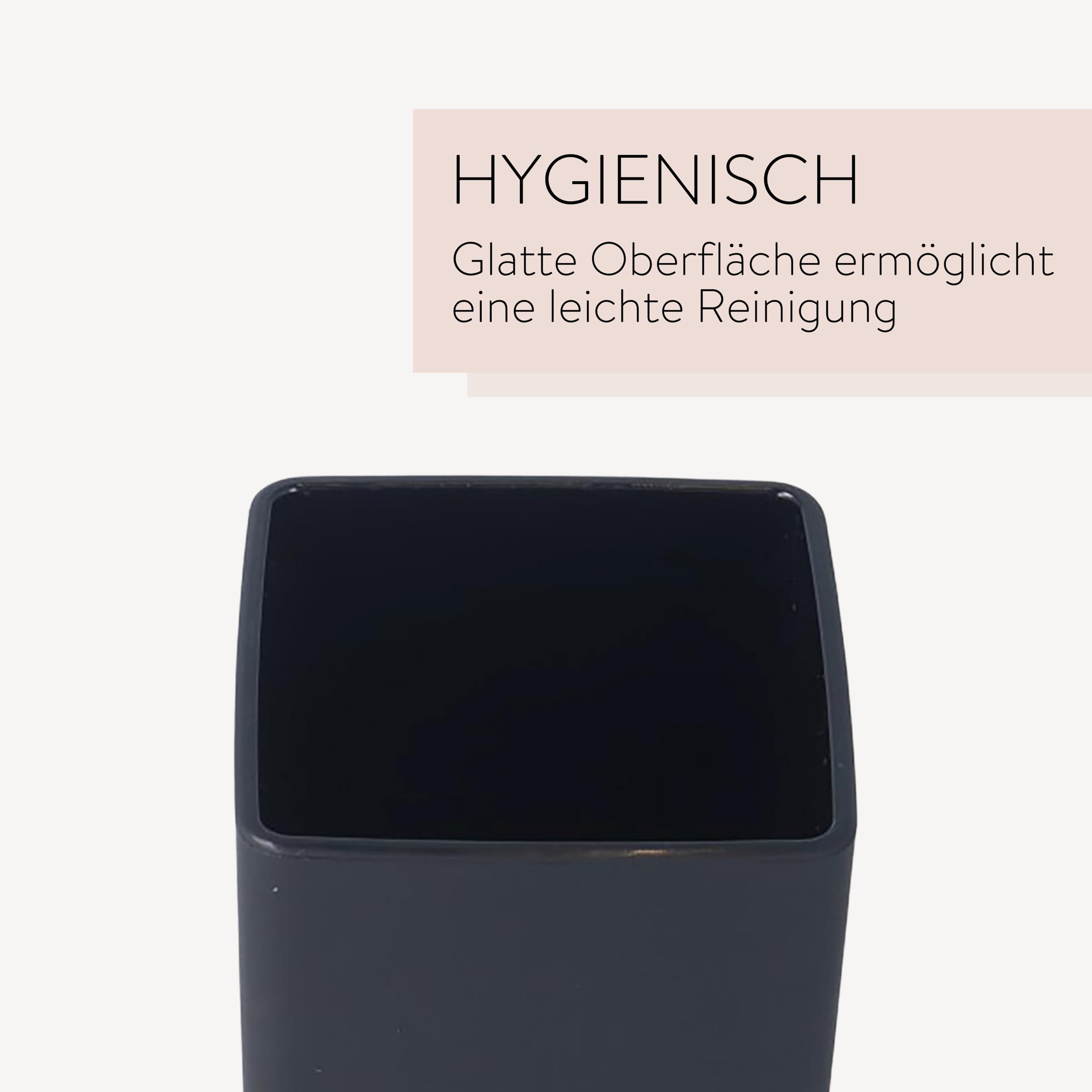 Das zeitlose Design passt in jedes Badezimmer - ob modern, landhausstil oder minimalistisch. Der Becher ist nicht nur stylisch, sondern auch hygienisch und einfach zu pflegen. Einfach abspülen und fertig!