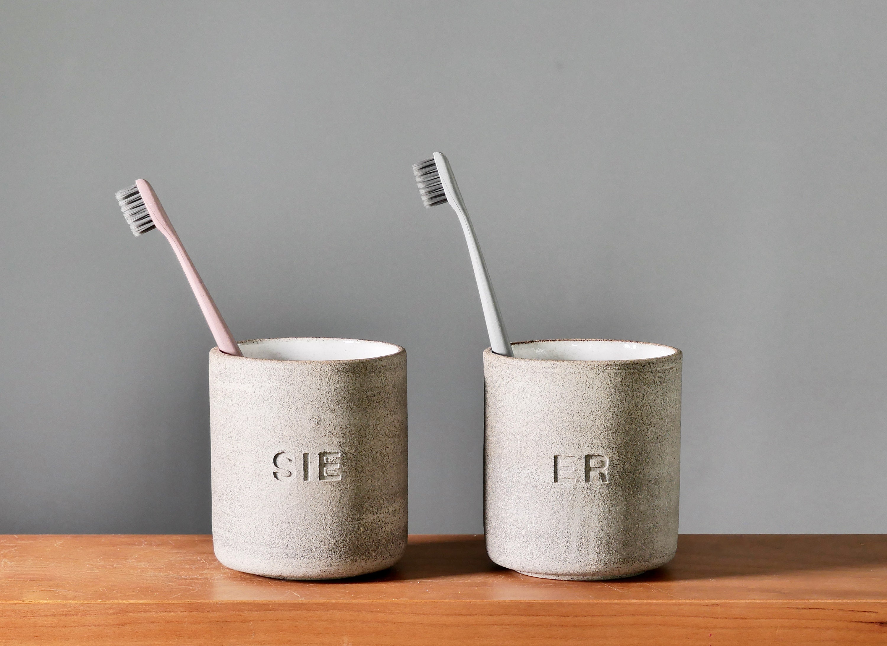 Ordnung im Bad war noch nie so stylisch! Dieses 2er-Set Zahnputzbecher in schicker Edelstahloptik bringt System in dein Badezimmer. Mit praktischer Trennwand lassen sich Zahnbürsten, Make-up-Pinsel oder Rasierer hygienisch trennen. Wenn du den Aufsatz abnimmst, wird daraus ein normaler Zahnputzbecher - super praktisch! Mit 11,5cm Höhe und 7,5cm Durchmesser passt der Becer perfekt auf jedes Waschbecken. Aus leichtem aber stabilem Kunststoff gefertigt, ist er einfach zu reinigen und sieht dabei aus wie teures Metall. Zwei Becher bedeutet: Einer für dich, einer für deinen Partner oder für verschiedene Utensilien. Endlich kein Chaos mehr auf der Waschbeckenplatte - und das zu einem unschlagbaren Preis!