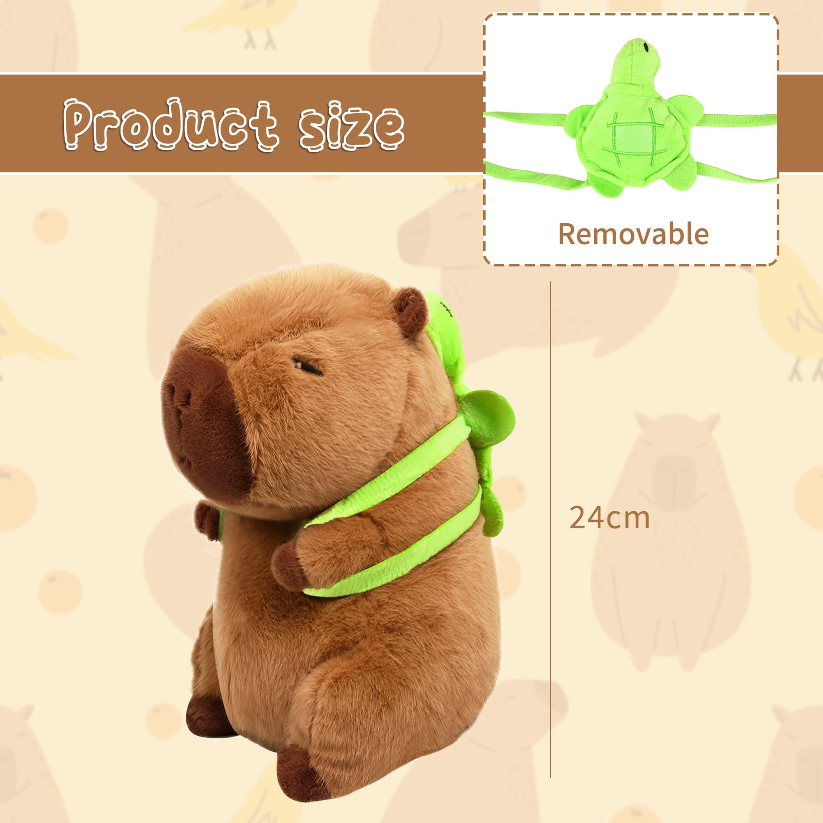 Oh, wie niedlich! Dieser Capybara-Plüsch von Zaloife ist einfach nur zum Knuddeln. Mit 23cm Größe perfekt zum Kuscheln, und das Beste: Er trägt einen winzigen Schildkrötenrucksack! Aus superweichem braunem Plüsch gefertigt, fühlt er sich richtig kuschelig an. Perfekt als Begleiter für Kinder - ob beim Einschlafen, Spielen oder auf Reisen. Aber auch Erwachsene werden dieses entzückende Tierchen lieben! Als Deko im Kinderzimmer, Wohnzimmer oder auf dem Bett macht es einfach überall eine gute Figur. Ein ideales Geschenk für Geburtstage, Weihnachten oder einfach so. Einfach in den Arm nehmen und wohlfühlen - garantiert ein Lächeln auf den Lippen!