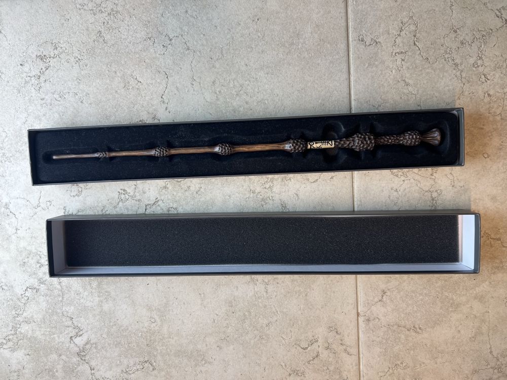 Tauch ein in die magische Welt mit diesem atemberaubenden Elderstab von Dumbledore! Drück einfach den Knopf und schon strahlt die Spitze des Zauberstabs in hellem Licht - du fühlst dich sofort wie ein echter Zauberer. Mit stolzen 37cm Länge und aus hochwertigem Harz gefertigt, ist dieser Zauberstab nicht nur detailgetreu nachgebildet, sondern auch robust und langlebig. Das wiederaufladbare Design sorgt für lang anhaltenden Magie-Spaß. Perfekt für Cosplay, Karneval, Halloween oder Mottopartys - hier wird jeder zum Zauberer! Im Set enthalten ist alles was das Hexenherz begehrt: 1x leuchtender Elderstab, 1x Zauberkarte, 1x Eintrittskarte, 1x Landkarte und 1x Zeitumkehrer-Halskette. Alles verpackt in einer schönen Geschenkbox - ideal als Geschenk für Harry Potter Fans jeden Alters. Die aufwendige Verarbeitung und die perfekten Details machen diesen Zauberstab zu einem echten Sammlerstück. Ob für die nächste Zaubershow oder einfach nur zum Dekorieren - hier kommt Magie ins Haus!