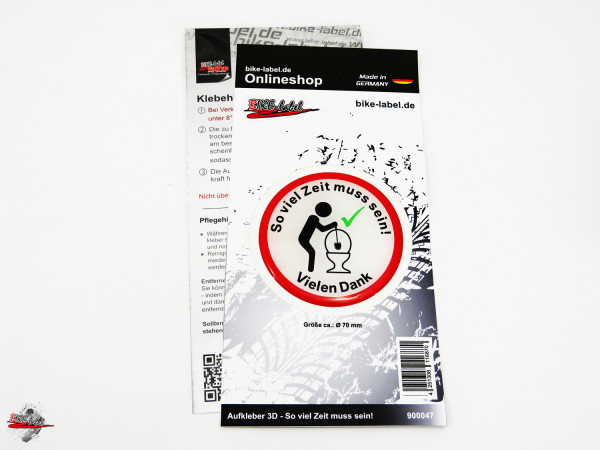 Der lustige Spruch für deine Toilette! Dieser 3D Aufkleber 'So viel Zeit muss sein' bringt Humor ins Badezimmer. Mit 70x70mm Größe, kratzfest und witterungsbeständig - hält auch draußen. Einfach auf glatte Flächen kleben, hält bombenfest. Made in Germany, keine billige Massenware. Perfekt als Geschenk oder für die eigene Tür - sorgt garantiert für Schmunzeln!