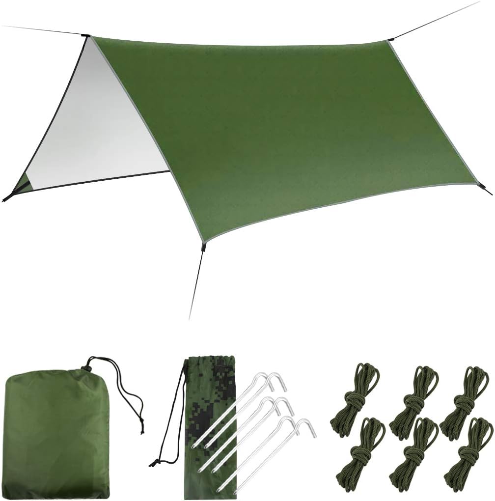 Regen? Sonne? Kein Problem mit dieser super Zeltplane! Mit 3x3 Metern bietet sie reichlich Platz für dein Zelt, deine Hängematte oder einfach als Schutz für deine Camping-Ausrüstung. Die wasserdichte PU3000mm Beschichtung hält auch bei Dauerregen alles trocken, und die silberbeschichtete Innenseite schützt vor UV-Strahlen. Hergestellt aus robustem 210D Oxford-Gewebe mit verstärkten Ecken und Nähten - diese Plane hält so einiges aus! Im Lieferumfang sind schon 6 Aluminium-Heringe und 6 Nylonseile enthalten - einfach aufbauen und los geht's! Perfekt für Camping, Festivals, Gartenpartys oder einfach als Sonnenschutz im heimischen Garten. Und wenn du wieder heimkommst, lässt sie sich klein zusammenfalten und in der praktischen Tragetasche verstauen. Einfach ein Must-Have für jeden Outdoor-Fan!
