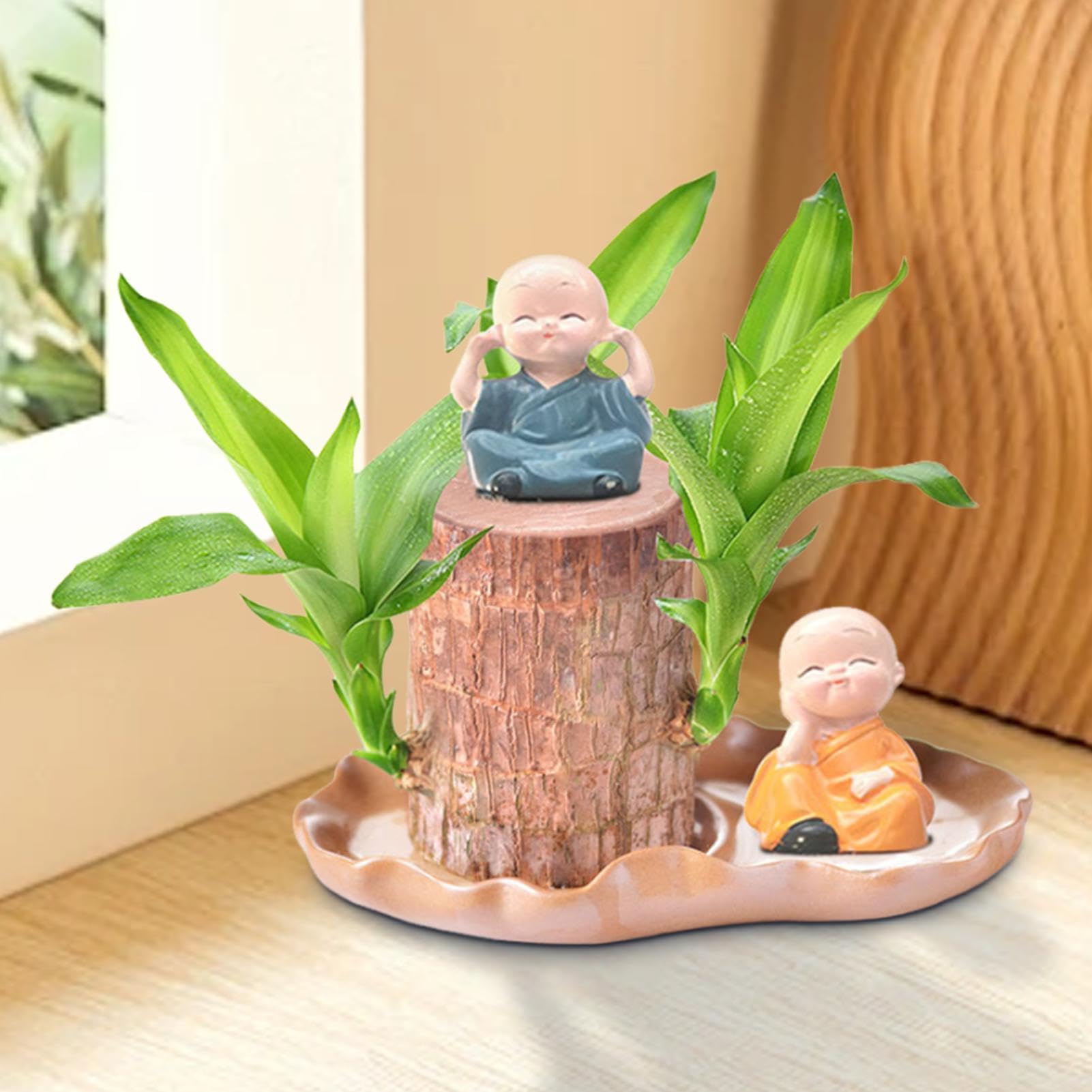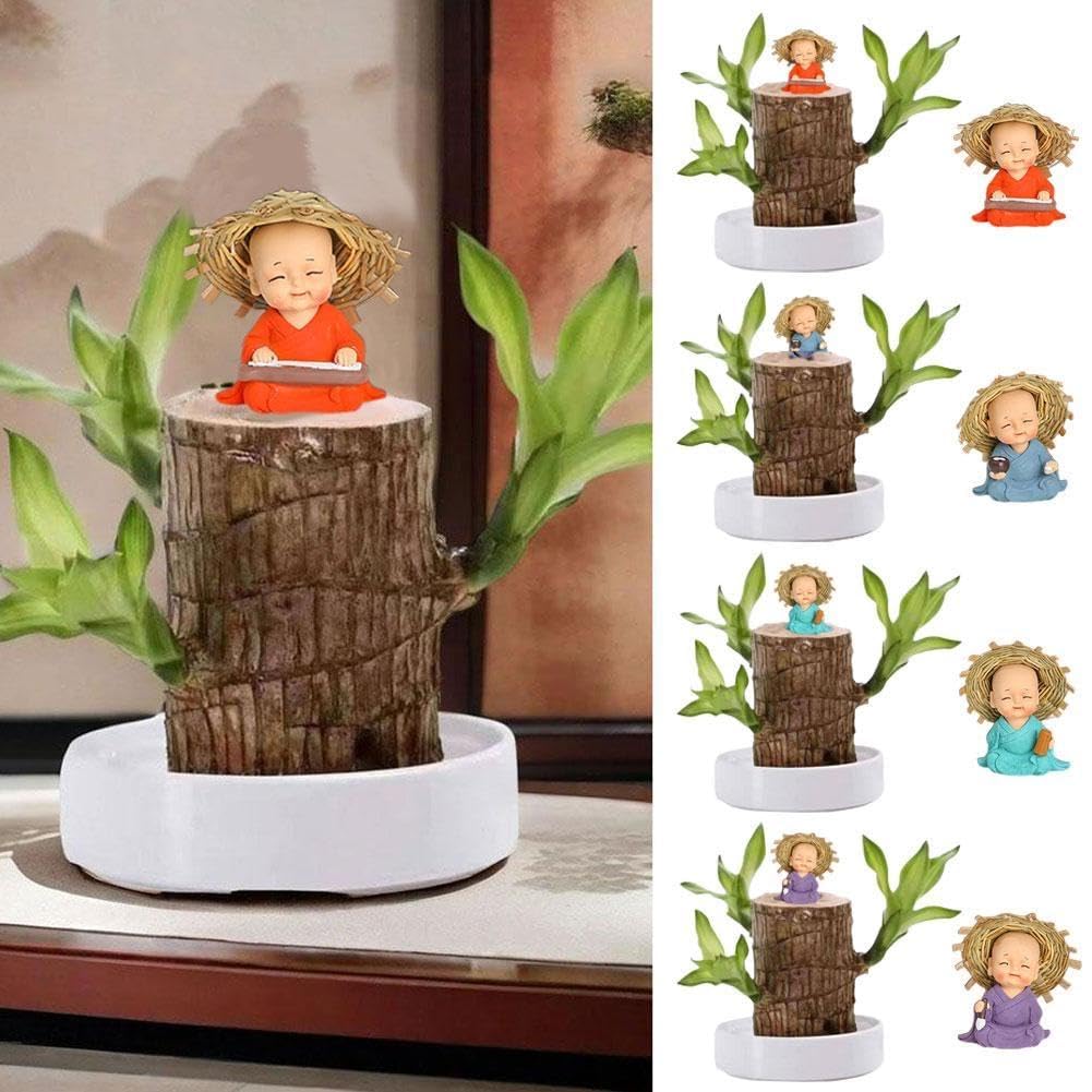 Chaies Brasilianische Holzpflanze Mit Mönchstatue - Zen Deko Für Zuhause & Büro