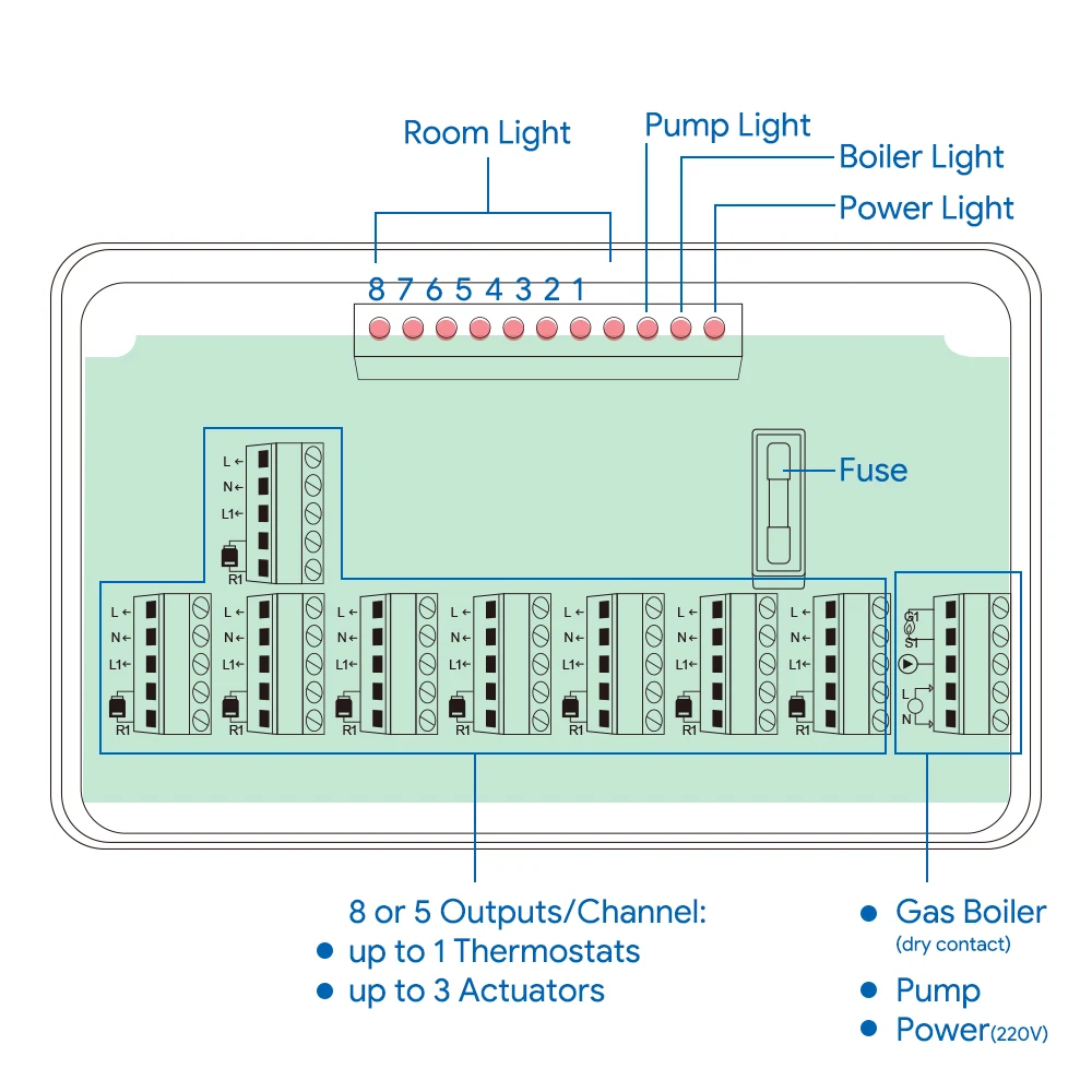 Willst du deine Heizkosten senken und jeden Raum individuell temperieren? Diese Mehrzonen-Heizungssteuerung macht's möglich! Mit 5 oder 8 Kanälen steuerst du jede Zone deiner Fußbodenheizung separat - vom Wohnzimmer bis zum Bad.