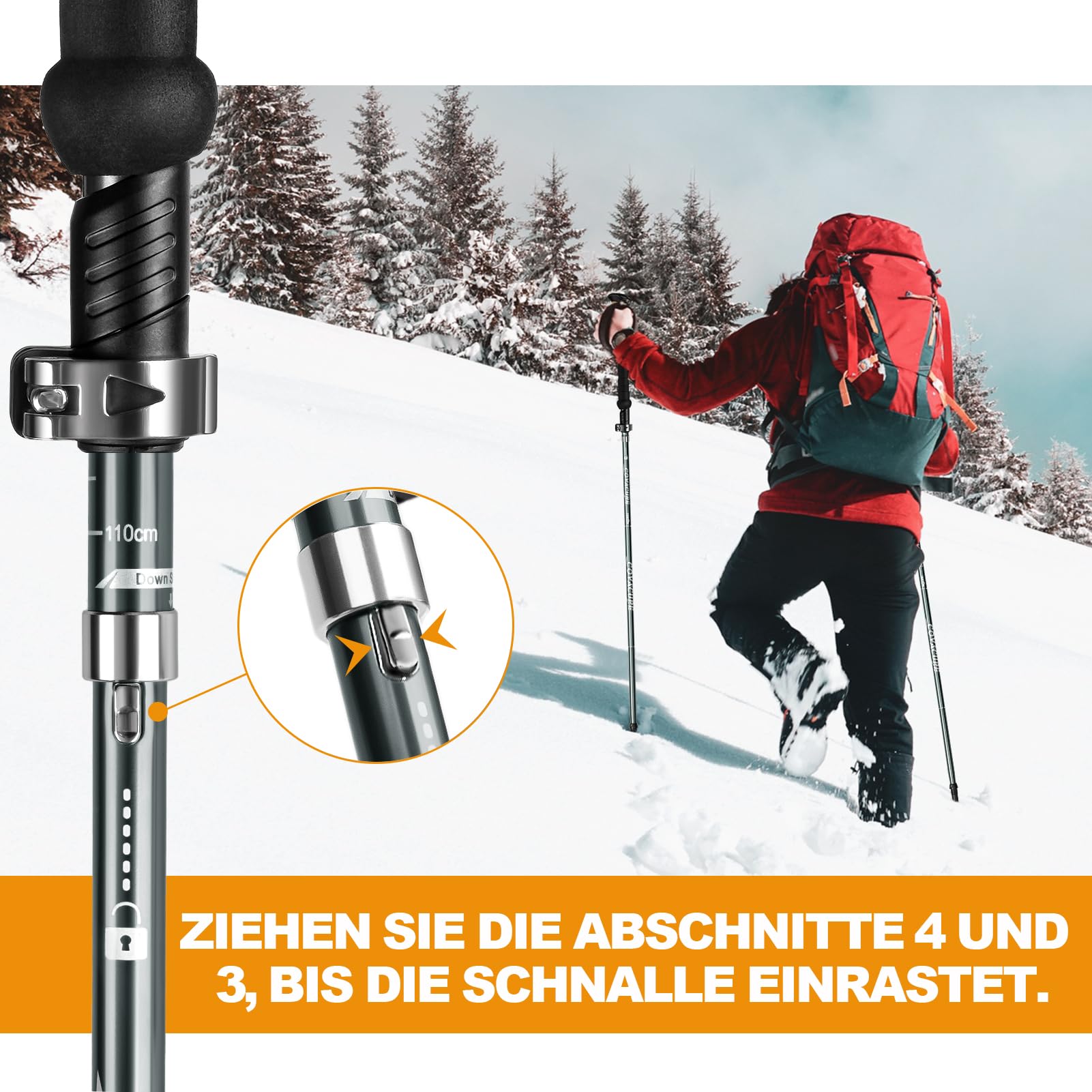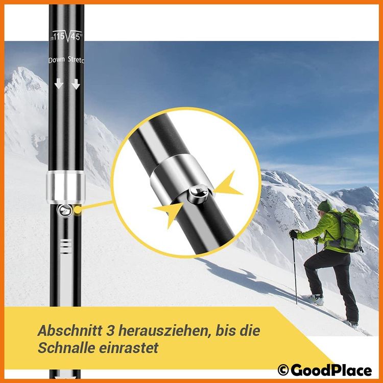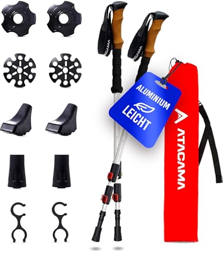Perfekte Begleiter für deine Wanderabenteuer! Diese Alpinus Zermatt Wanderstöcke aus superleichtem Carbon wiegen nur ca. 200g pro Stock - das merkst du kaum im Rucksack. Das geniale Falt-Design: In Sekunden zusammengeklappt auf nur 36cm Länge - ideal für unterwegs! Teleskop-System mit stufenloser Verstellung von 110-130cm, perfekt für jede Körpergröße. Die rutschfesten EVA-Schaum-Griffe liegen super in der Hand und die verstellbaren Handgelenkschlaufen geben zusätzlichen Halt. Mit Widia-Spitzen für guten Grip auf jedem Untergrund - ob Asphalt, Waldwege oder felsige Bergpfade. Im Lieferumfang sind Sommer- und Winter-Trekkingplatten sowie Gummispitzen dabei - für jede Jahreszeit gerüstet. Ob du läufst, wanderst oder bergsteigst - mit diesen Stöcken bist du sicher und komfortabel unterwegs. Einfach auspacken, auseinanderfalten, Länge einstellen und los geht's!