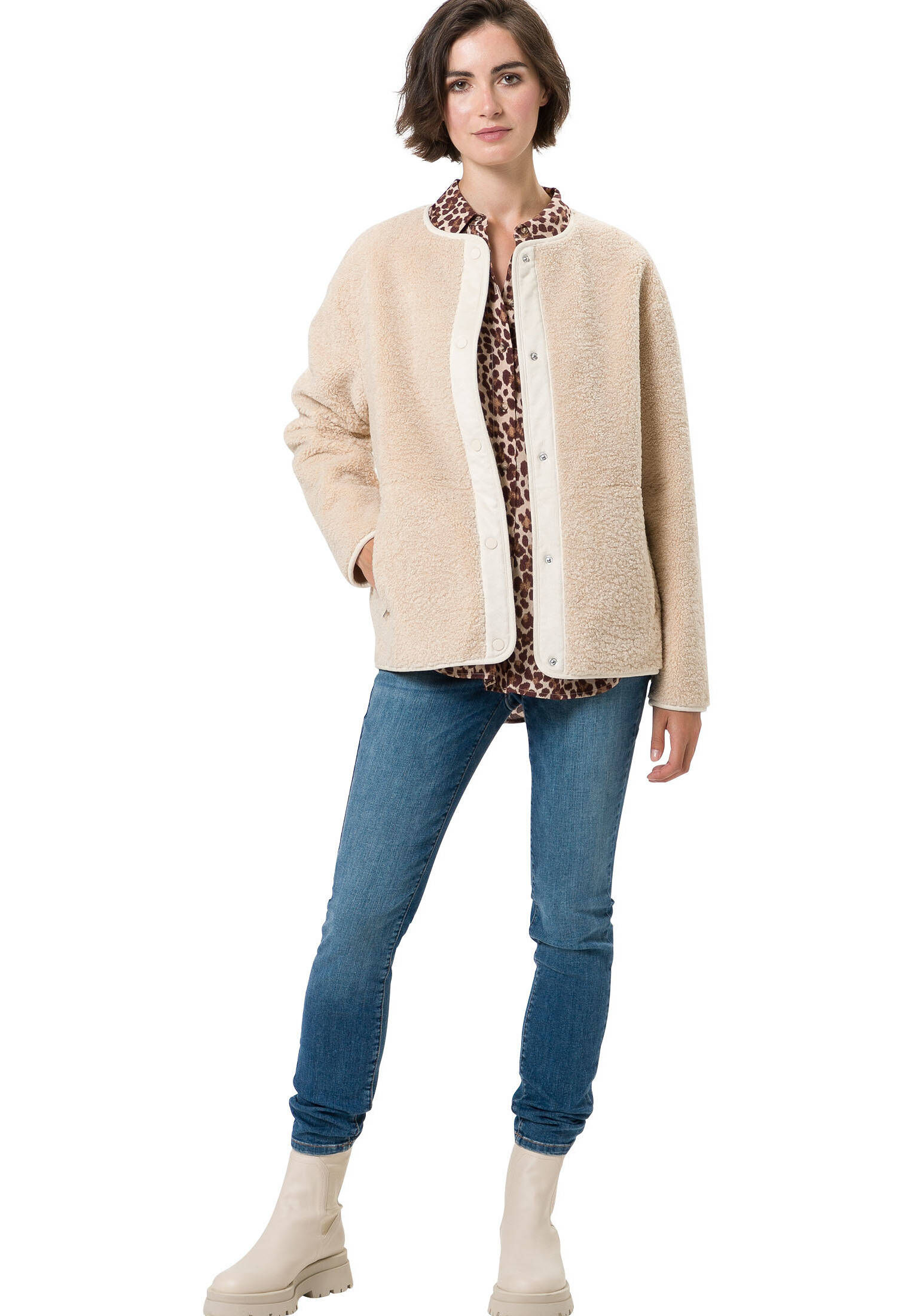 Stylish und nachhaltig - die zero Damenjacke in wärmendem Eggnog! Diese schicke Kurzjacke aus hochwertigem Fellimitat sieht aus wie echtes Fell, ist aber tierfreundlich. In Größe 38 passt sie perfekt und wärmt dich an kühlen Tagen. Der moderne Schnitt sitzt super und lässt sich vielseitig kombinieren - ob zu Jeans, Röcken oder Overalls. Die Farbe Eggnog ist ein schönes, cremiges Beige, das zu vielen Outfits passt. Perfekt für den Übergang zwischen den Jahreszeiten oder als zusätzliche Lage im Winter. Einfach überziehen und du bist startklar für Stadtbummel, Arbeit oder Freizeit. Zero steht für Qualität und durchdachtes Design - diese Jacke wird schnell zu deinem neuen Lieblingsteil! Sieht teuer aus, ist aber erfreulich erschwinglich. Gönn dir diesen stylischen Begleiter für die kühlere Jahreszeit!