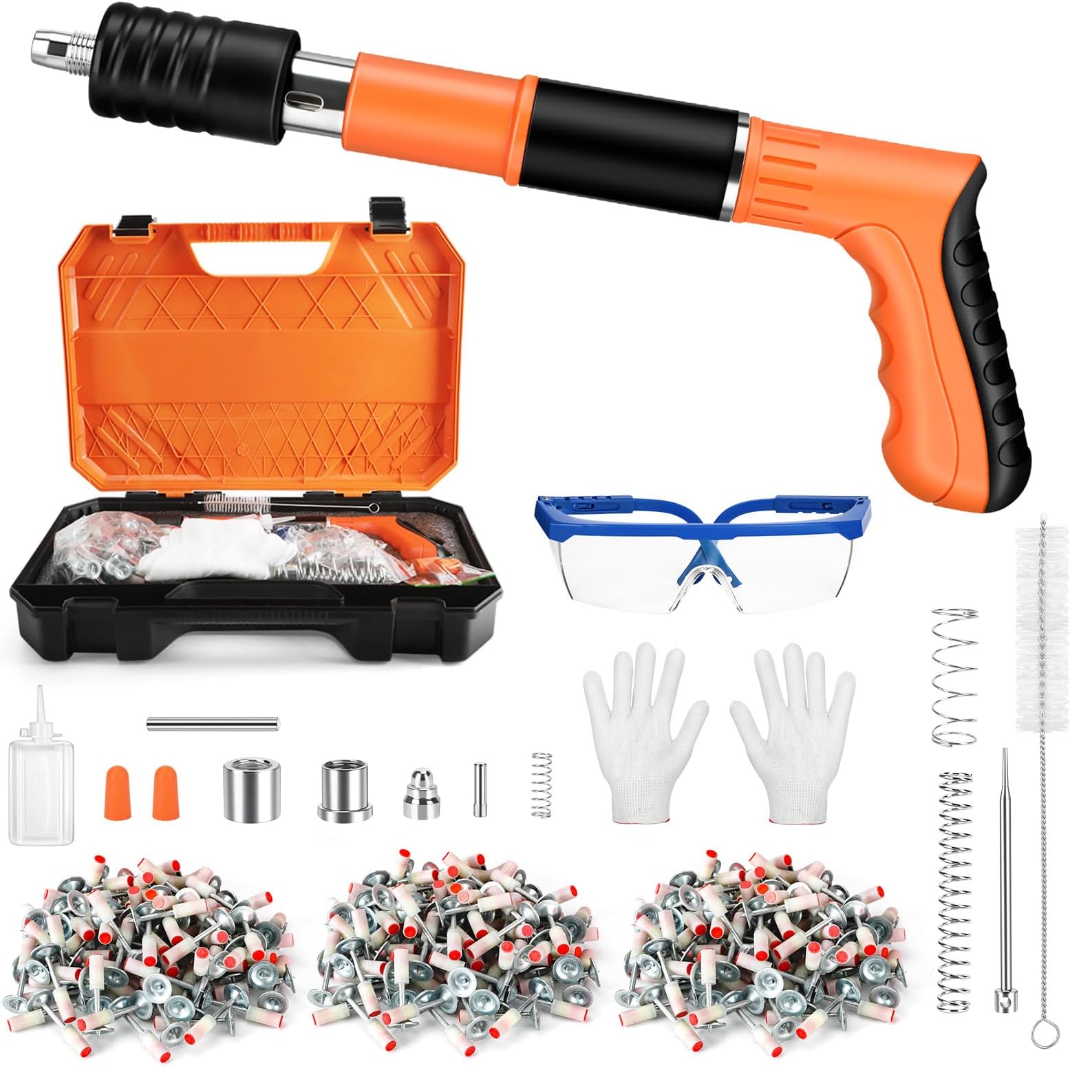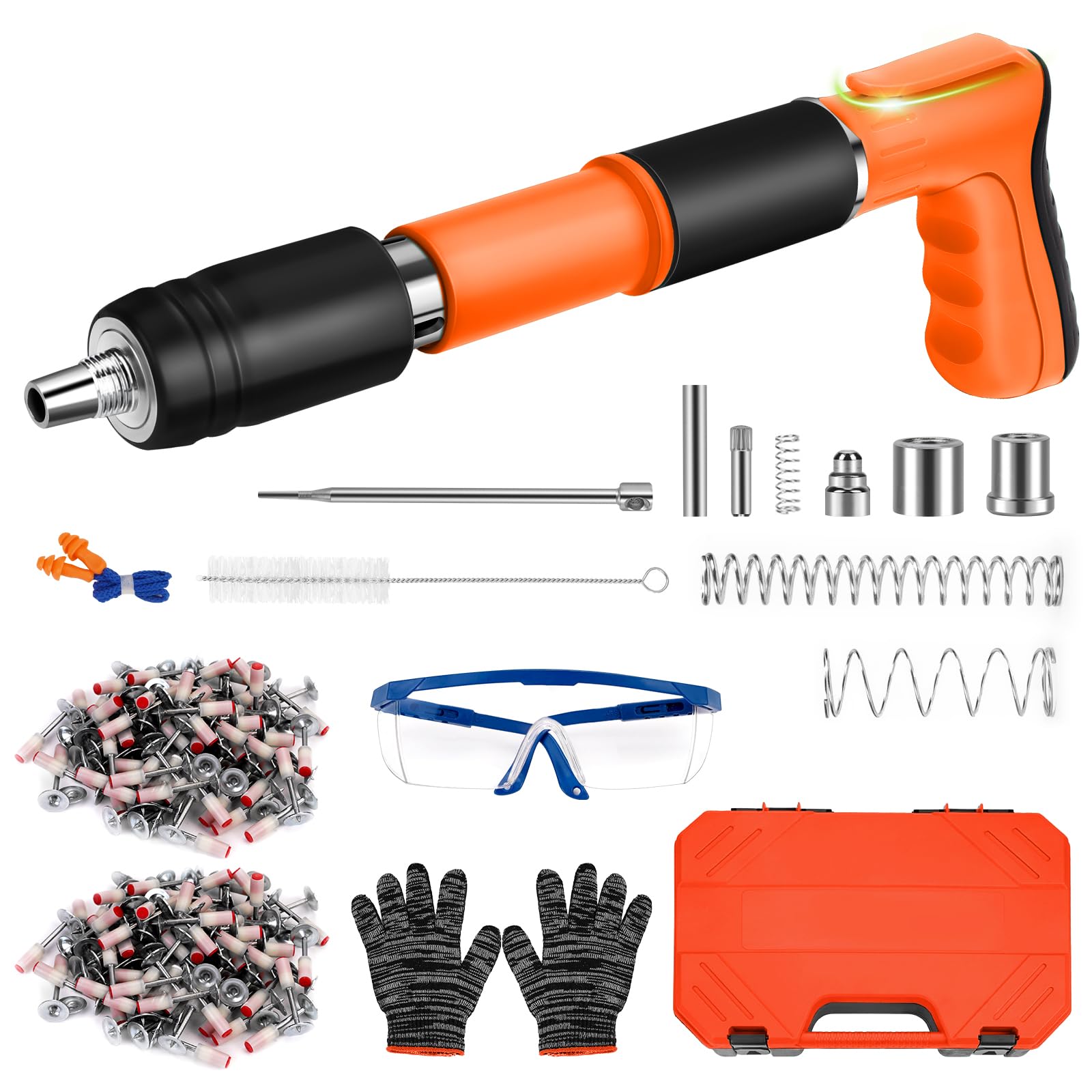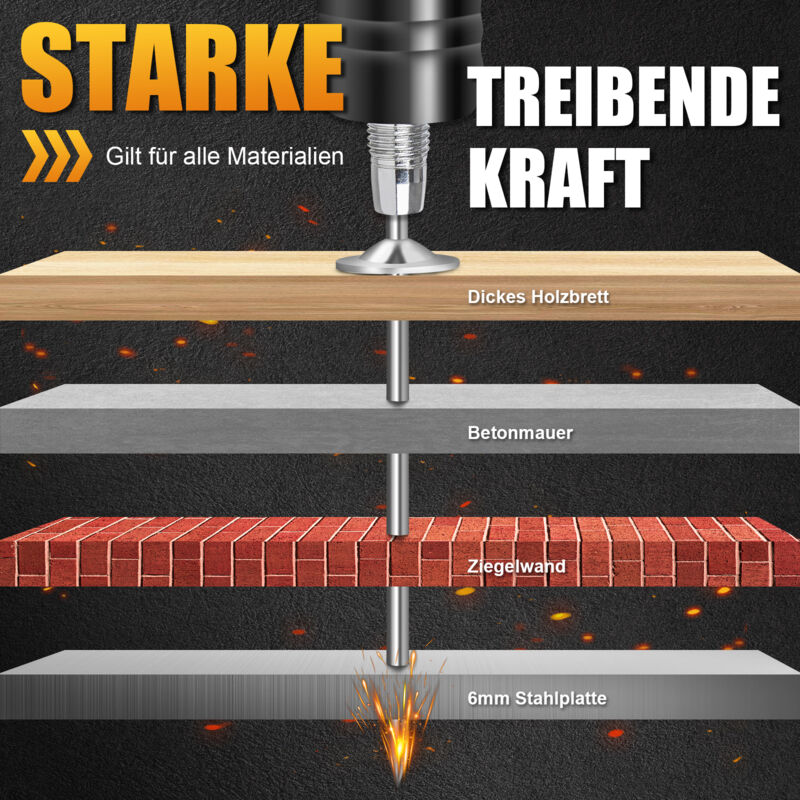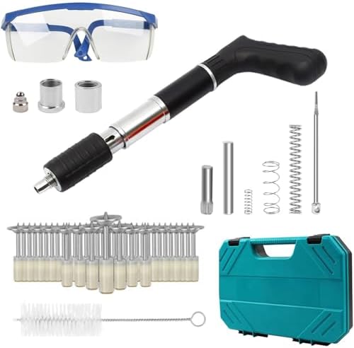 Hey, brauchst du eine zuverlässige Nagelpistole für harte Oberflächen? Dieses Set hat alles! Die Pistole hat 5 einstellbare Gänge für verschiedene Materialien wie Beton, Ziegel oder Holz. Im Lieferumfang sind 200 runde Nägel, eine Schutzbrille, Handschuhe und Werkzeug enthalten. Sie ist leicht, kompakt und dank Doppelschalldämpfer relativ leise. Einfach zu bedienen: Nagel einlegen, Pistole senkrecht ansetzen und Druck ausüben. Perfekt für Heimwerker oder Profis. Denk dran, immer Schutzausrüstung zu tragen! Damit sparst du Zeit und Kraft bei deinen Projekten. Robust und langlebig – probier’s aus!