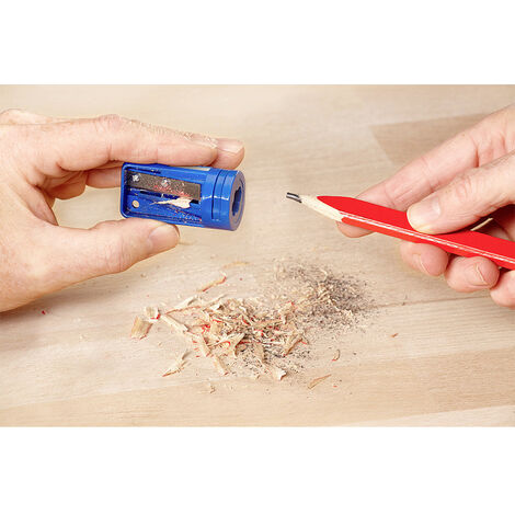 Besonders clever: Die Zimmermannsbleistifte haben integrierte Spitzer - immer eine scharfe Spitze parat! Und der Metall-Anreißer hat eine Magnetfunktion oben für Nägel und Schrauben.