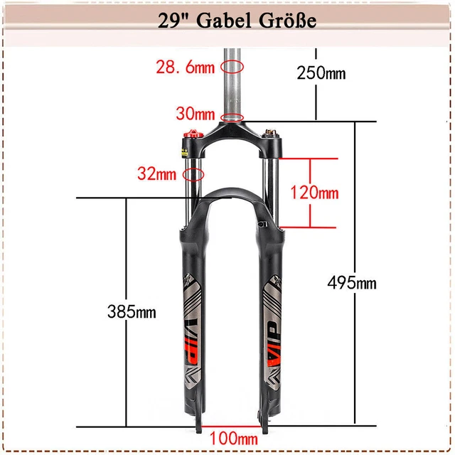 Upgrade für kleine Biker! Diese Federgabel passt auf 20 und 24 Zoll Kinder-Mountainbikes. Mit 100mm Federweg - schluckt jedes Schlagloch! Aus Alu-Legierung und Stahl - stabil aber nicht zu schwer (ca. 2,2kg). Mechanische Sperre - kannst du je nach Gelände einstellen. Für Reifen bis 2,4 Zoll Breite. QR 9x100mm Achse - leicht zu montieren. Mit Rückstelleinstellung - justierbar für weich oder hart. Passt zu Scheibenbremsen (A-Säule). Macht aus jedem Kinderfahrrad ein Offroad-Monster! Perfekt für Trails, Waldwege oder den Park. Dein Kind wird's lieben! Lieferung: 1x Federgabel. Bitte vorher Fahrraddaten checken!