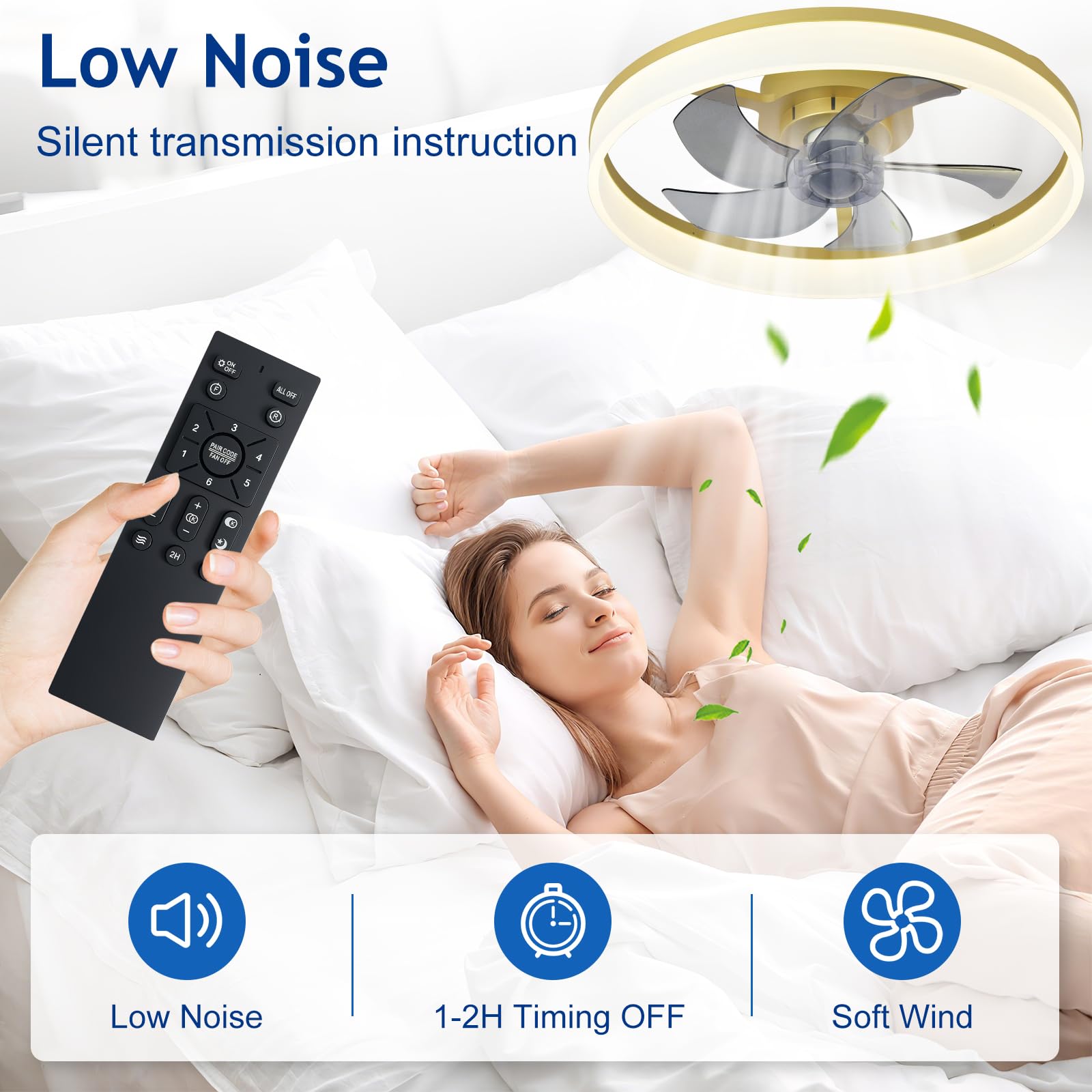 Stylish und praktisch! Dieser Depuley Deckenventilator im Bauernhaus-Design ist ein echter Hingucker. Mit 20 Zoll Durchmesser und 7 ABS-Flügeln passt er perfekt in Schlafzimmer, Küche oder Wohnzimmer.\n\nDer superleise DC-Motor arbeitet mit unter 30 Dezibel - leiser als ein Flüstern! 6 Geschwindigkeitsstufen geben dir die volle Kontrolle über die Luftzirkulation. Im Sommer kühlend, im Winter für optimale Wärmeverteilung.\n\nMit praktischer APP-Fernbedienung steuerst du alles bequem vom Sofa aus: Timer-Funktion (1/2/4 Stunden), Drehrichtung und Licht. Die 4 E27 Fassungen nehmen bis zu 40W Birnen auf - inklusive!\n\nDas elegante Käfig-Design in Schwarz mit goldener Lampenfassung macht jeden Raum gemütlicher. Einfache DIY-Montage - alles im Lieferumfang enthalten. Style und Komfort in einem!