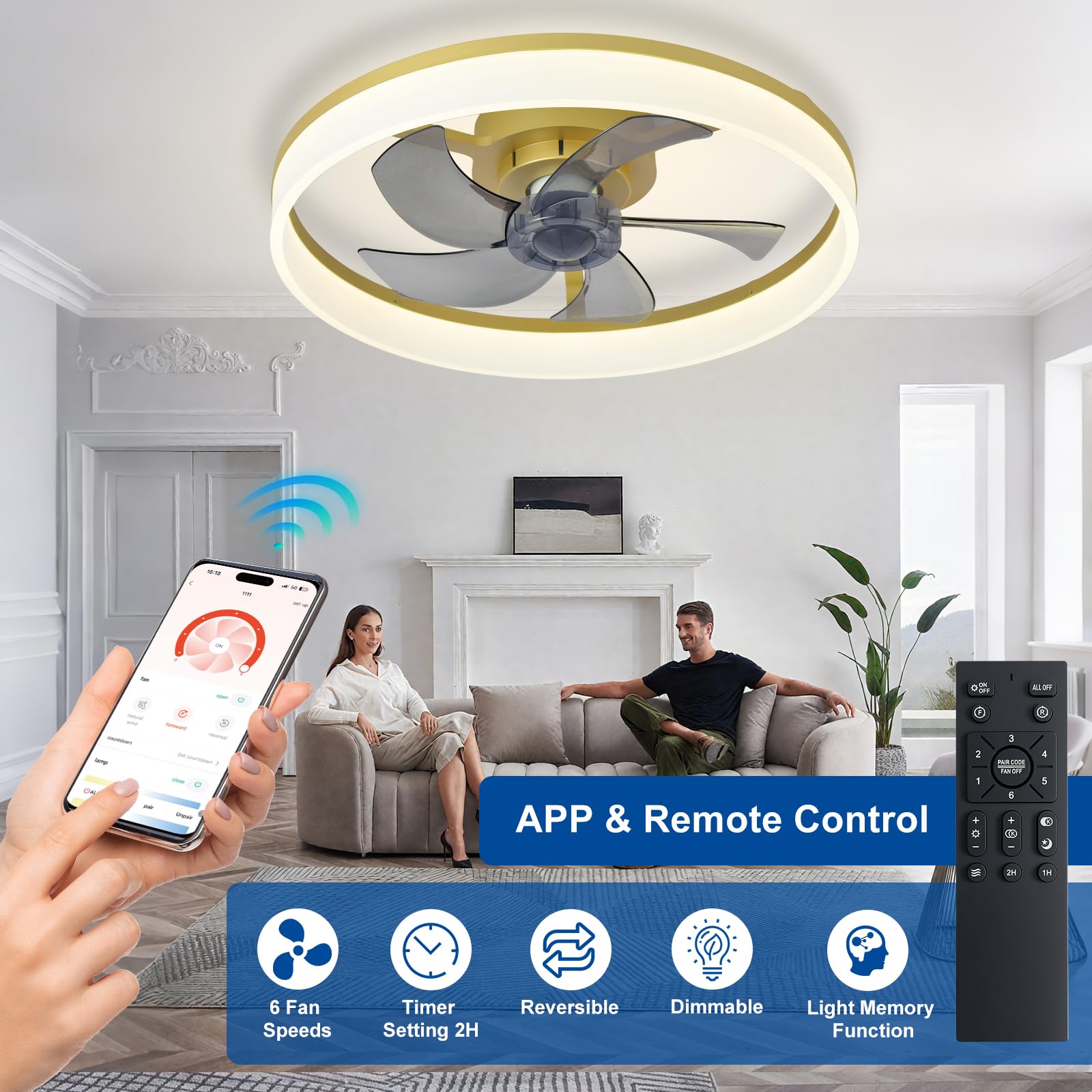 • Depuley Deckenventilator Mit Licht - 20 Zoll Bauernhaus Design, APP Fernbedienung, E27