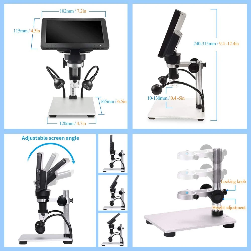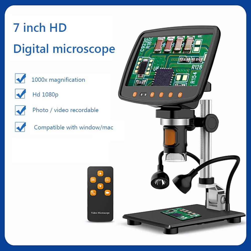 Entdecke die Welt der kleinsten Details! Dieses digitale Mikroskop mit 7 Zoll Bildschirm zeigt dir alles in bis zu 1200-facher Vergrößerung. Perfekt für Elektronik-Reparaturen, Lötarbeiten oder einfach zum Erkunden deiner Umgebung. Der drehbare Bildschirm gibt dir immer den perfekten Blickwinkel. Mit 8 LED-Leuchten - zwei flexible Schwanenhalslampen und integrierte Beleuchtung - siehst du auch in dunklen Ecken alles kristallklar. Auflösung bis zu 1080FHD für gestochen scharfe Bilder und Videos. Einfach per USB-C aufladen (1800 mAh Akku) oder an PC/Mac anschließen. Inklusive Metallständer für stabile Positionierung. Achtung: Kein biologisches Labormikroskop für Zellen, aber ideal für Technik, Handwerk und Hobby. Für Speicherkarte bis 32 GB (nicht enthalten). Tauche ein in die Mikrowelt - du wirst staunen, was alles vor deiner Nase passiert!